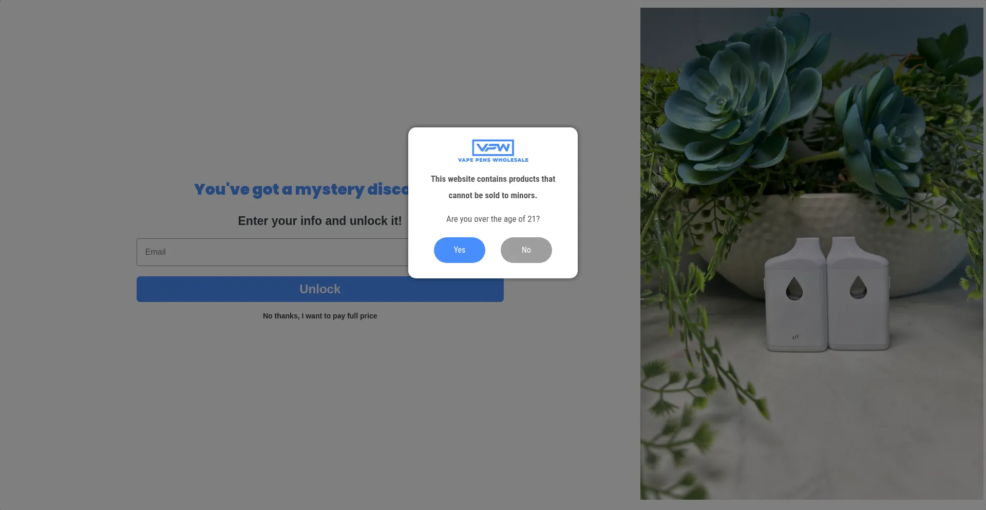 该网站实现数据收集表单,请求个人信息,包括姓名、电子邮件地址、电话号码或其他敏感详细信息。用户应验证 vapepenswholesale.com 的合法性并在提交个人数据前查看隐私政策。