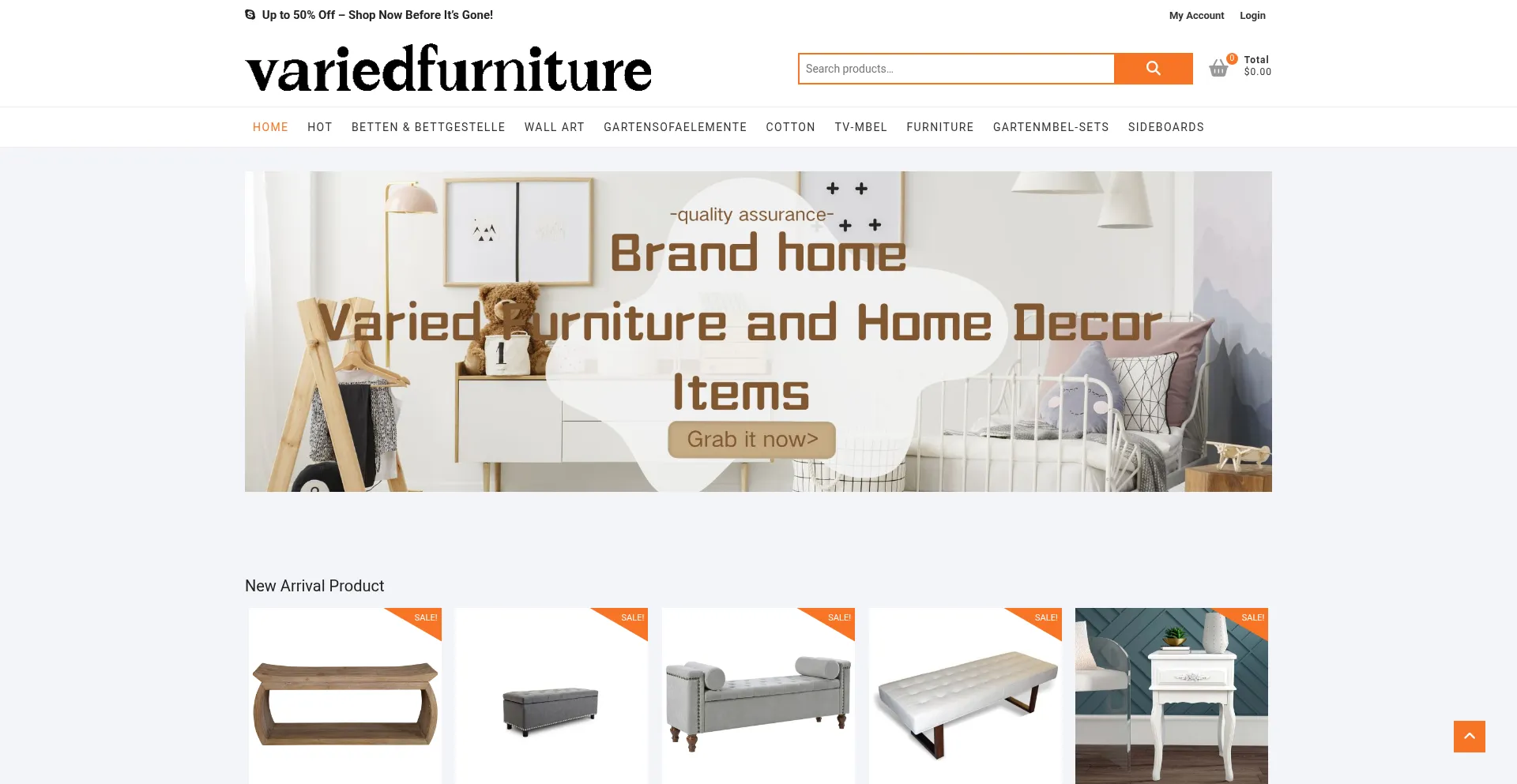分析表明 variedfurniture.com 作为电子商务平台运营,促进商品或服务的在线交易。该网站实现了购物车功能、支付处理系统和产品目录功能,这些是商业零售运营的典型特征。
