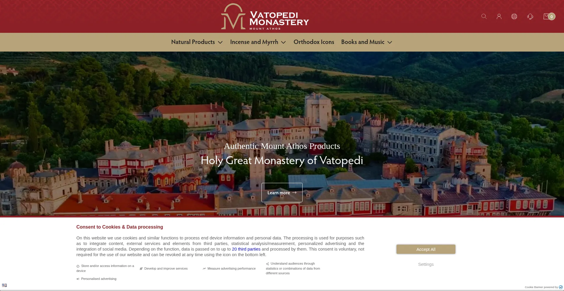 Authentic handmade products from the Holy Monastery of Vatopedi on Mount Athos. Unique quality in incense, oil, honey, wine, olives, and more