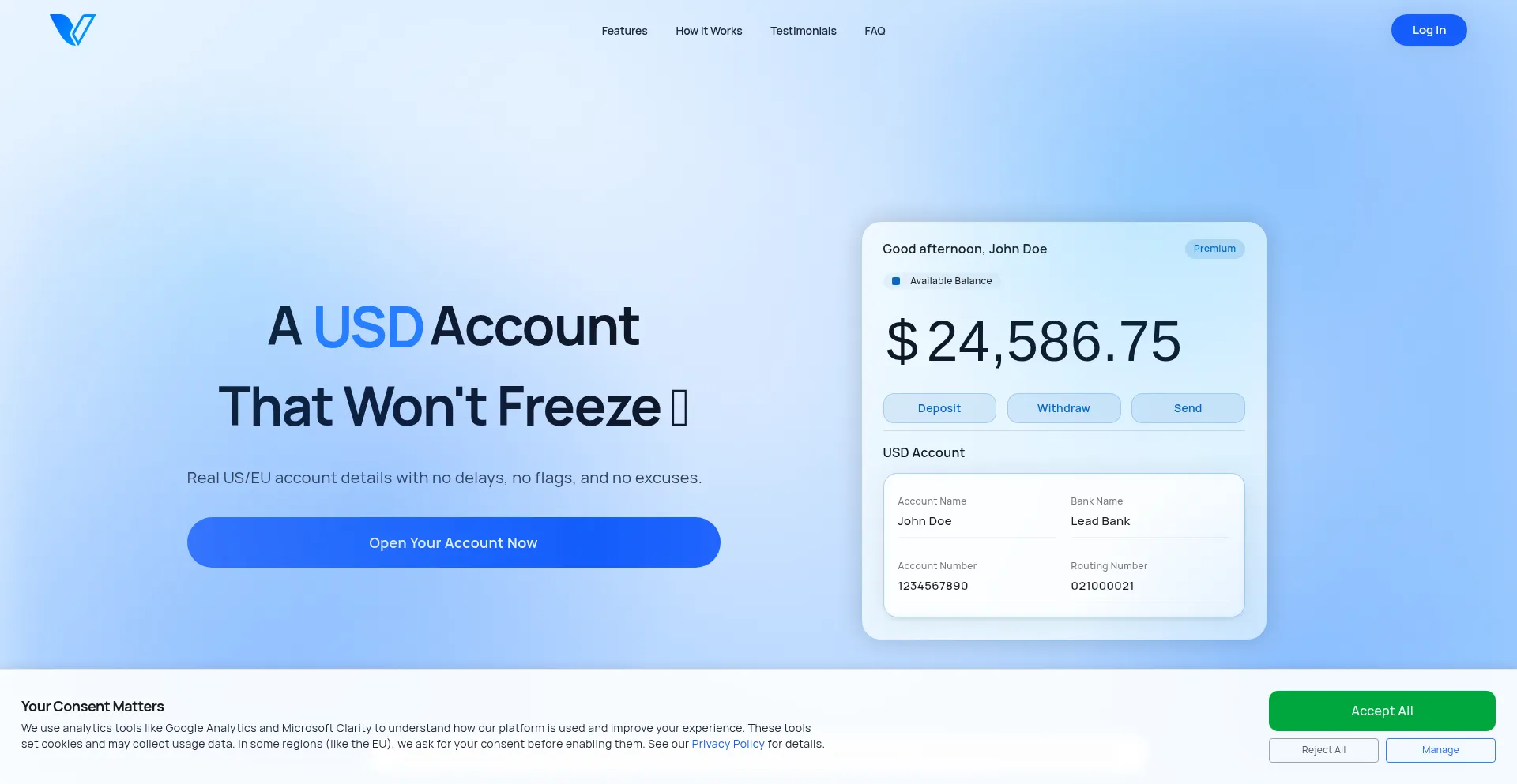 USD & EUR Accounts with No LLC Required | VaultLeap