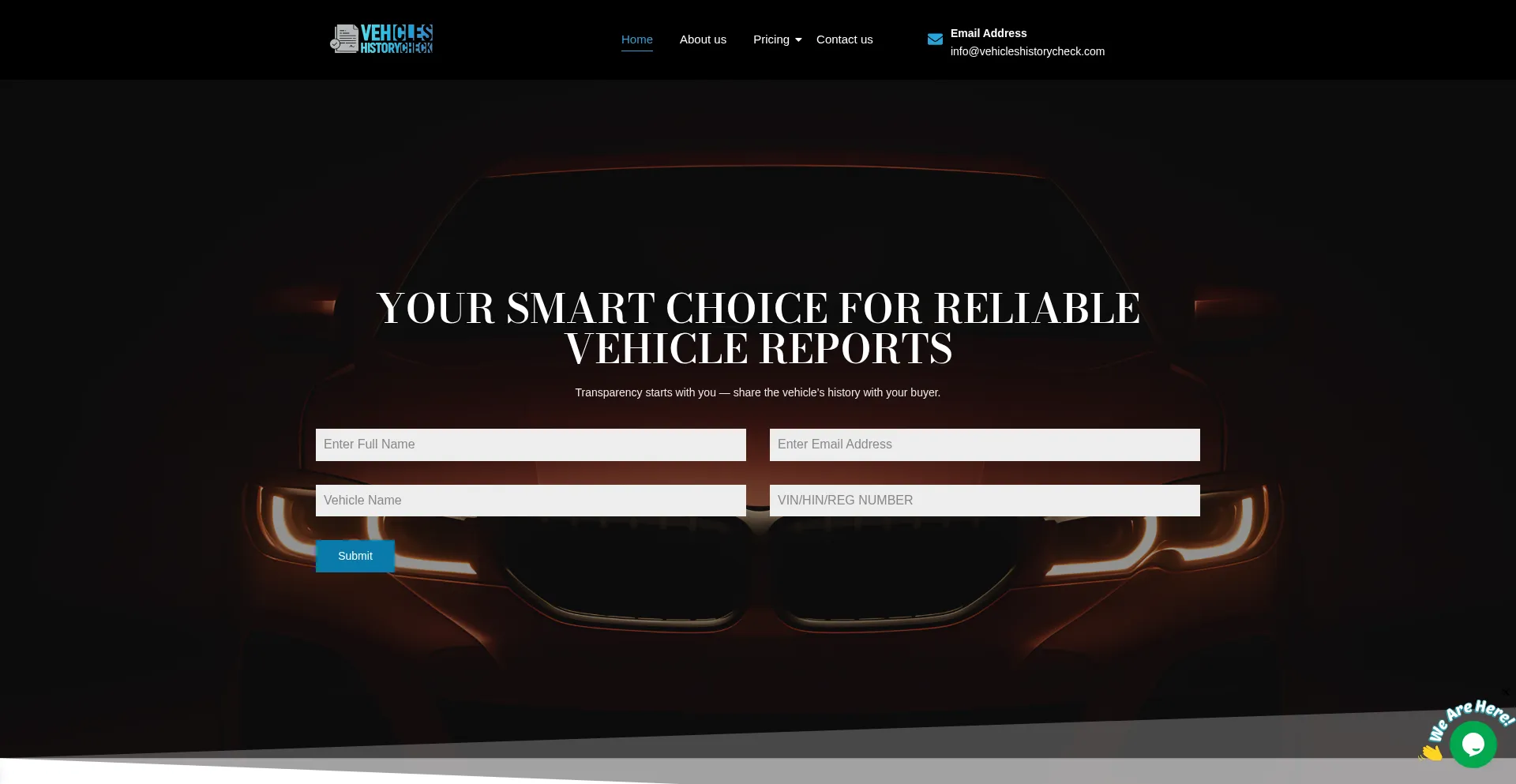 该网站实现数据收集表单,请求个人信息,包括姓名、电子邮件地址、电话号码或其他敏感详细信息。用户应验证 vehicleshistorycheck.com 的合法性并在提交个人数据前查看隐私政策。