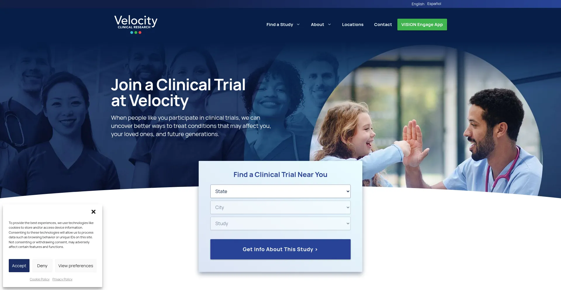 Search for a study: Velocity Clinical Research is always seeking participants for clinical trials of medications, vaccines, medical devices, and more.