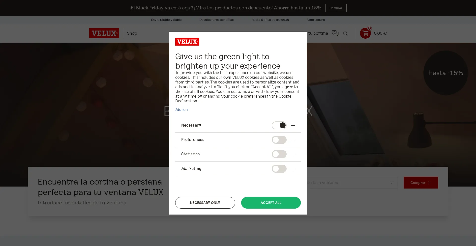 Compra tus cortinas y estores VELUX en la tienda oficial de cortinas y estores veluxshop.es. Elige entre una amplia gama de tallas y colores - Entrega GRATUITA.
