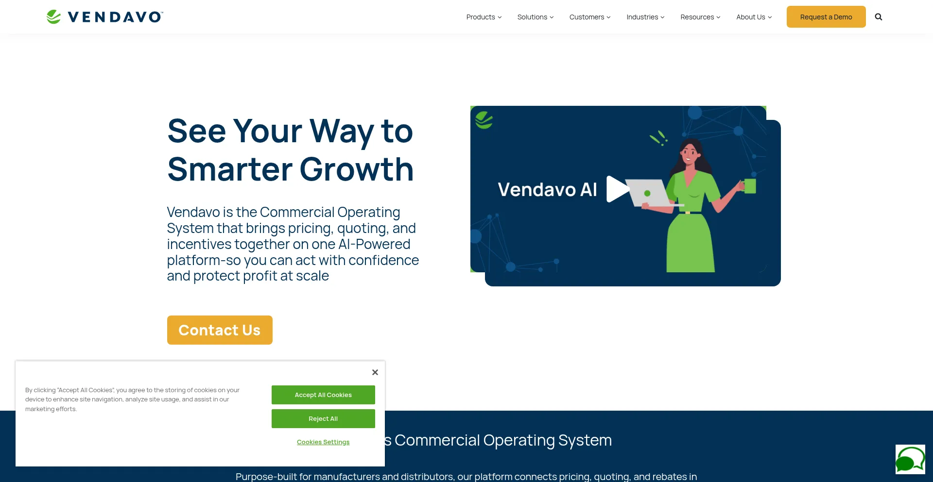 该网站实现符合GDPR或CCPA等隐私法规的cookie同意机制。这表明 vendavo.com 遵守数据保护标准并为用户提供对个人数据收集实践的控制。