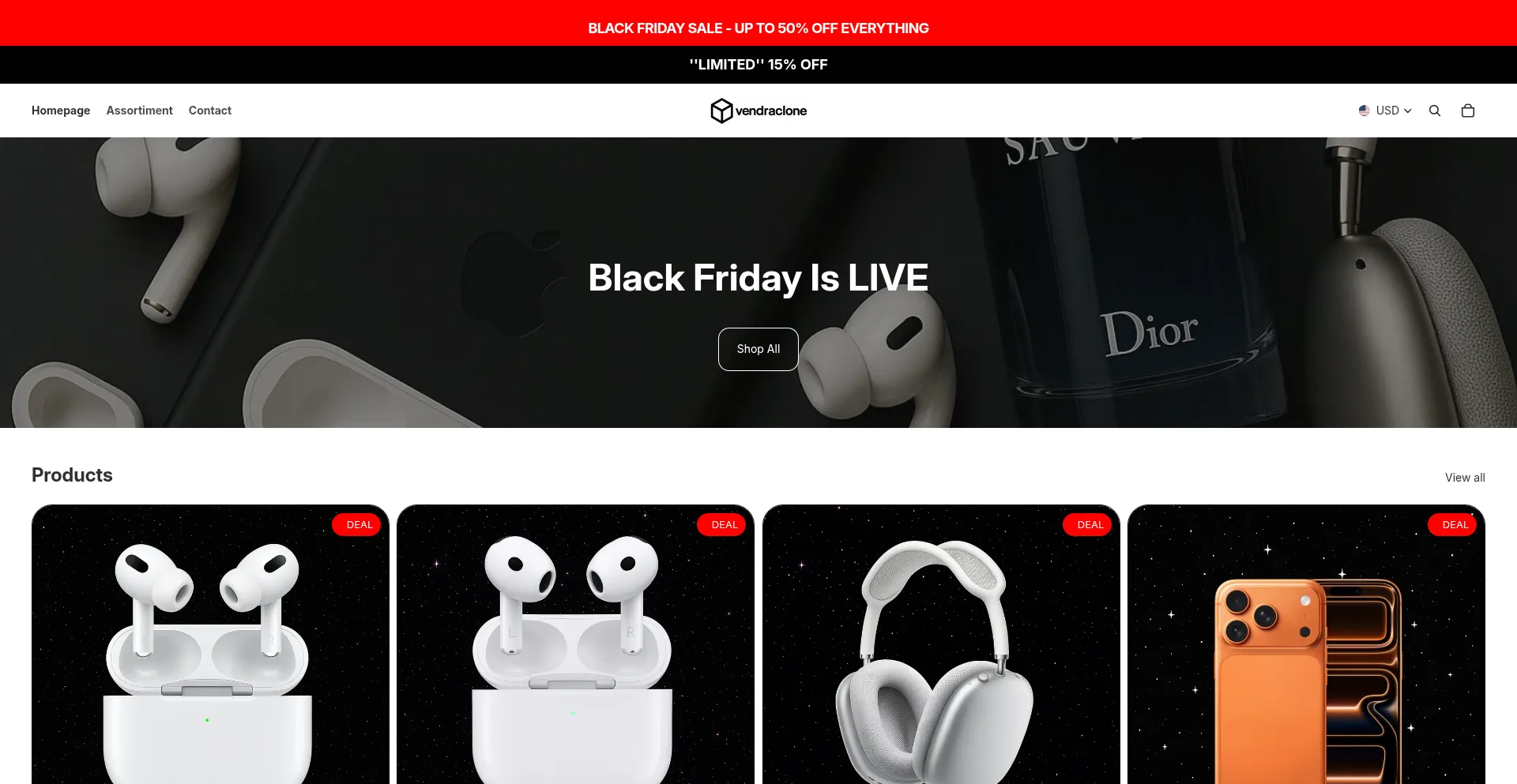 分析表明 venderclones.shop 作为电子商务平台运营,促进商品或服务的在线交易。该网站实现了购物车功能、支付处理系统和产品目录功能,这些是商业零售运营的典型特征。