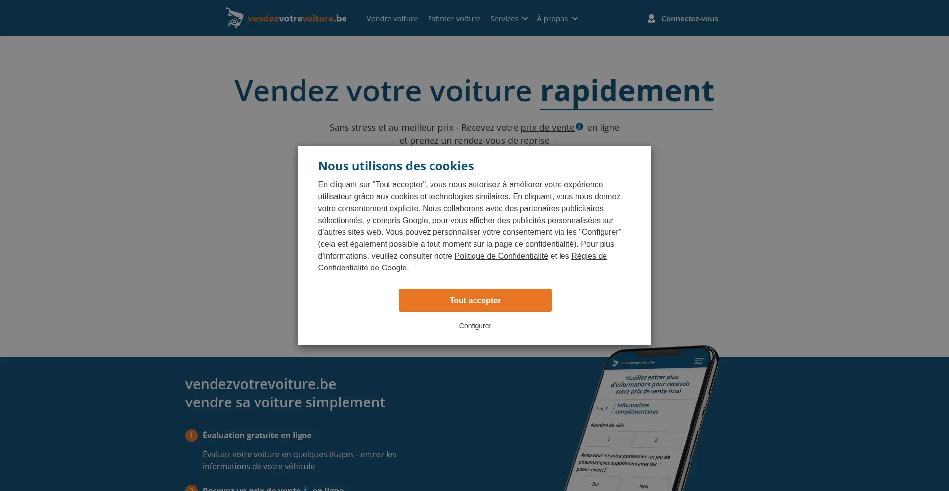 vendezvotrevoiture.be 使用 Google Tag Manager 在其网站上添加和更新追踪代码(标签)。