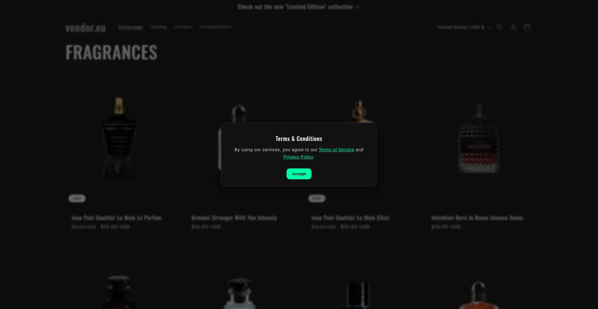 该网站利用流行产品名称和品牌来吸引流量并产生用户兴趣。这些产品可能通过促销活动或折扣策略提供,旨在增加 vendor-eu.myshopify.com 的访客参与度和转化率。