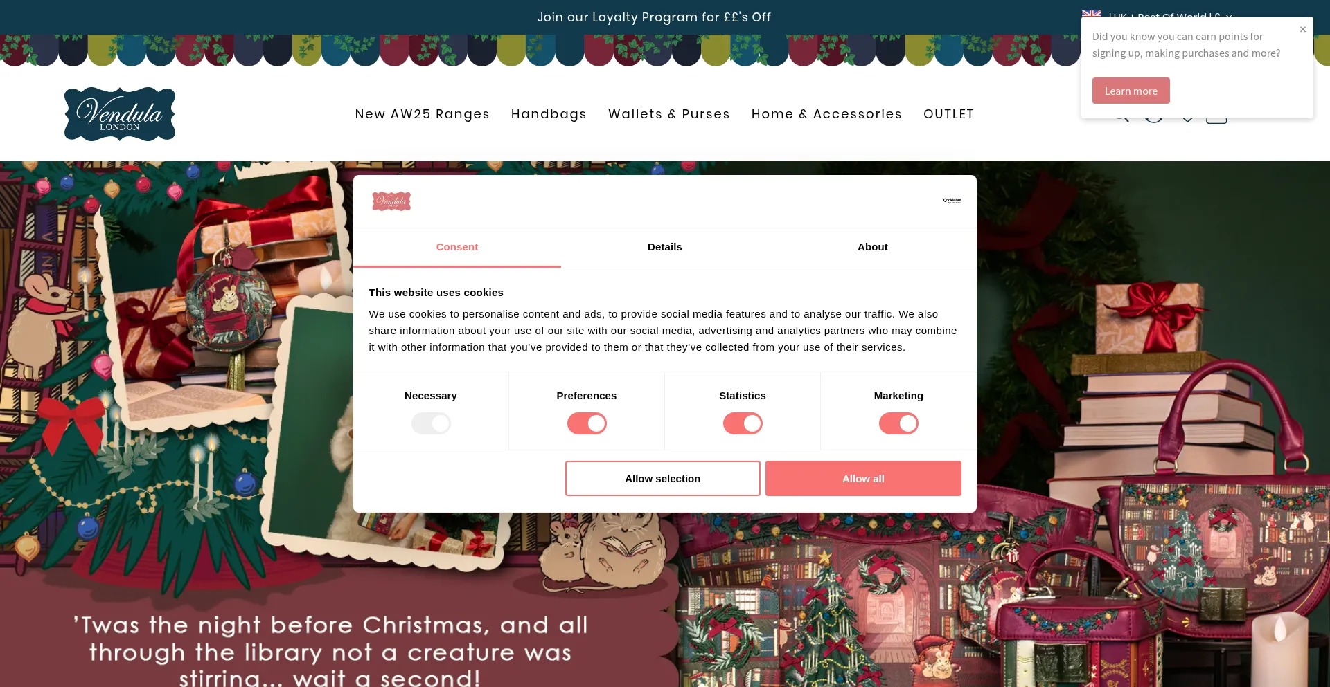 该网站实现符合GDPR或CCPA等隐私法规的cookie同意机制。这表明 vendulalondon.com 遵守数据保护标准并为用户提供对个人数据收集实践的控制。