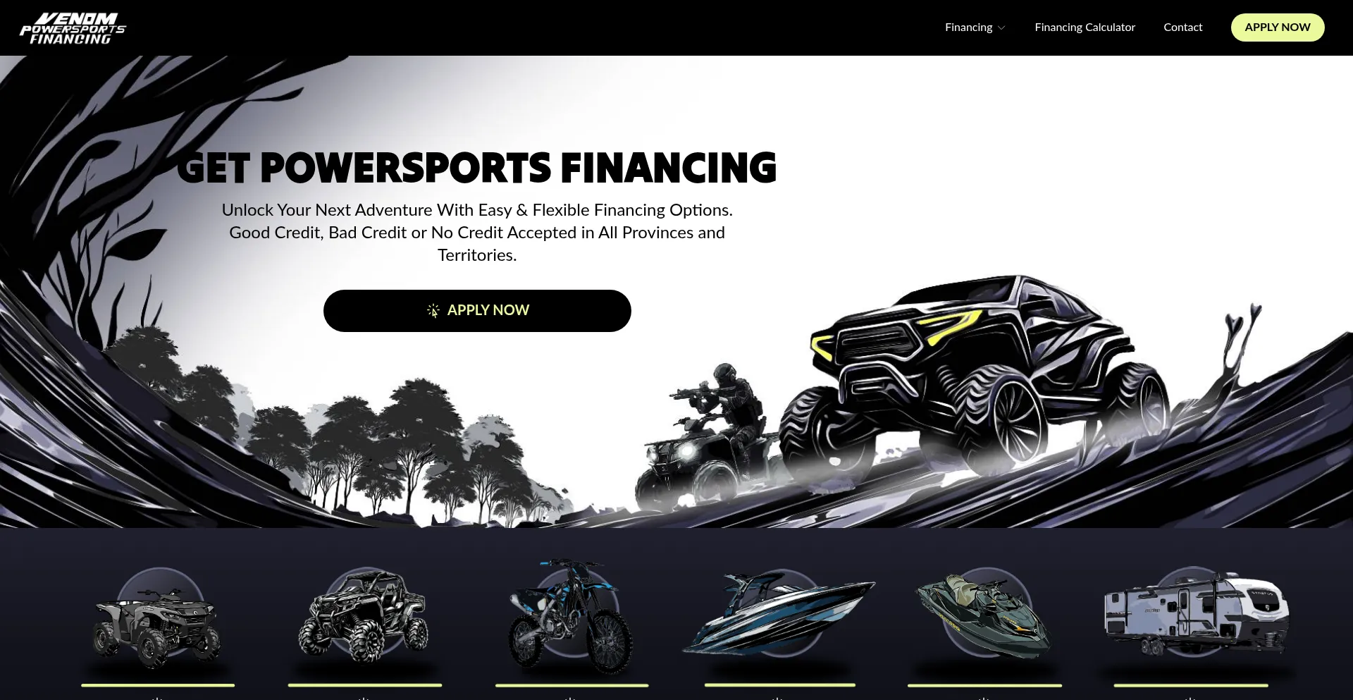 该网站实现数据收集表单,请求个人信息,包括姓名、电子邮件地址、电话号码或其他敏感详细信息。用户应验证 venom-powersports.com 的合法性并在提交个人数据前查看隐私政策。
