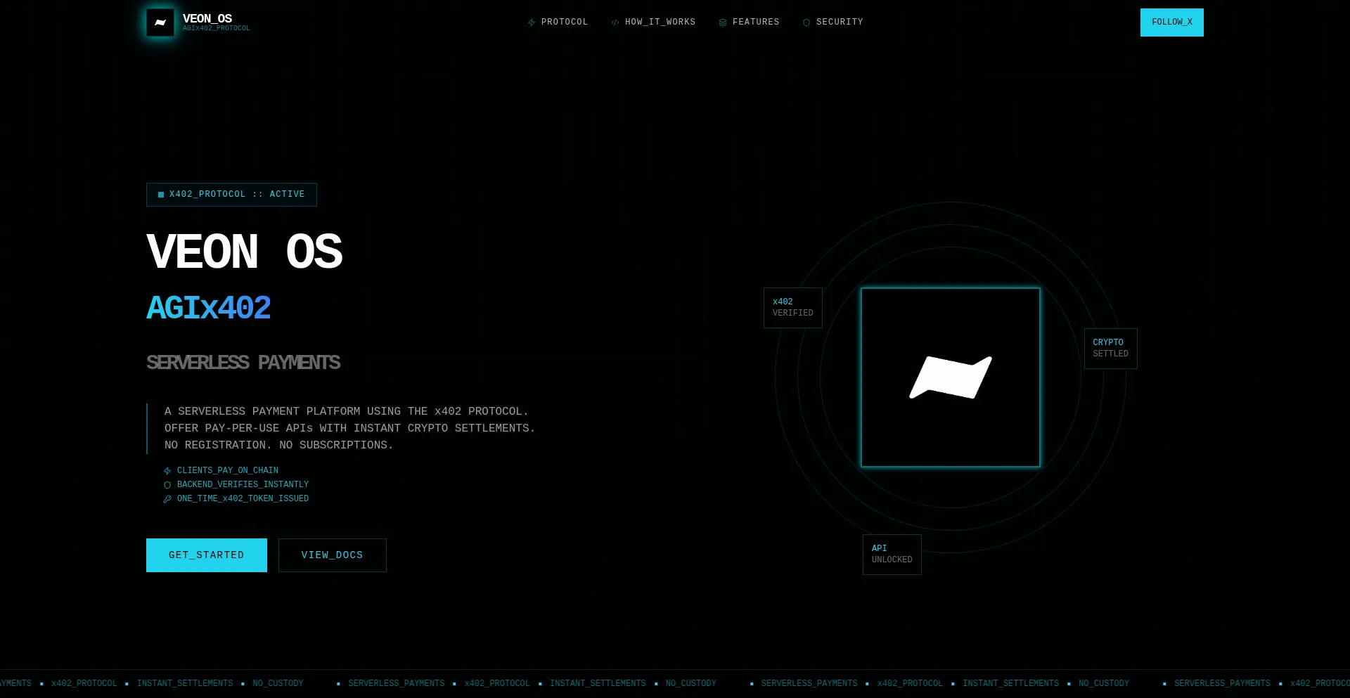 Serverless payment platform using the x402 protocol. Pay-per-use APIs with instant crypto settlements. No registration, no subscriptions. You verify. You settle. You own the data.