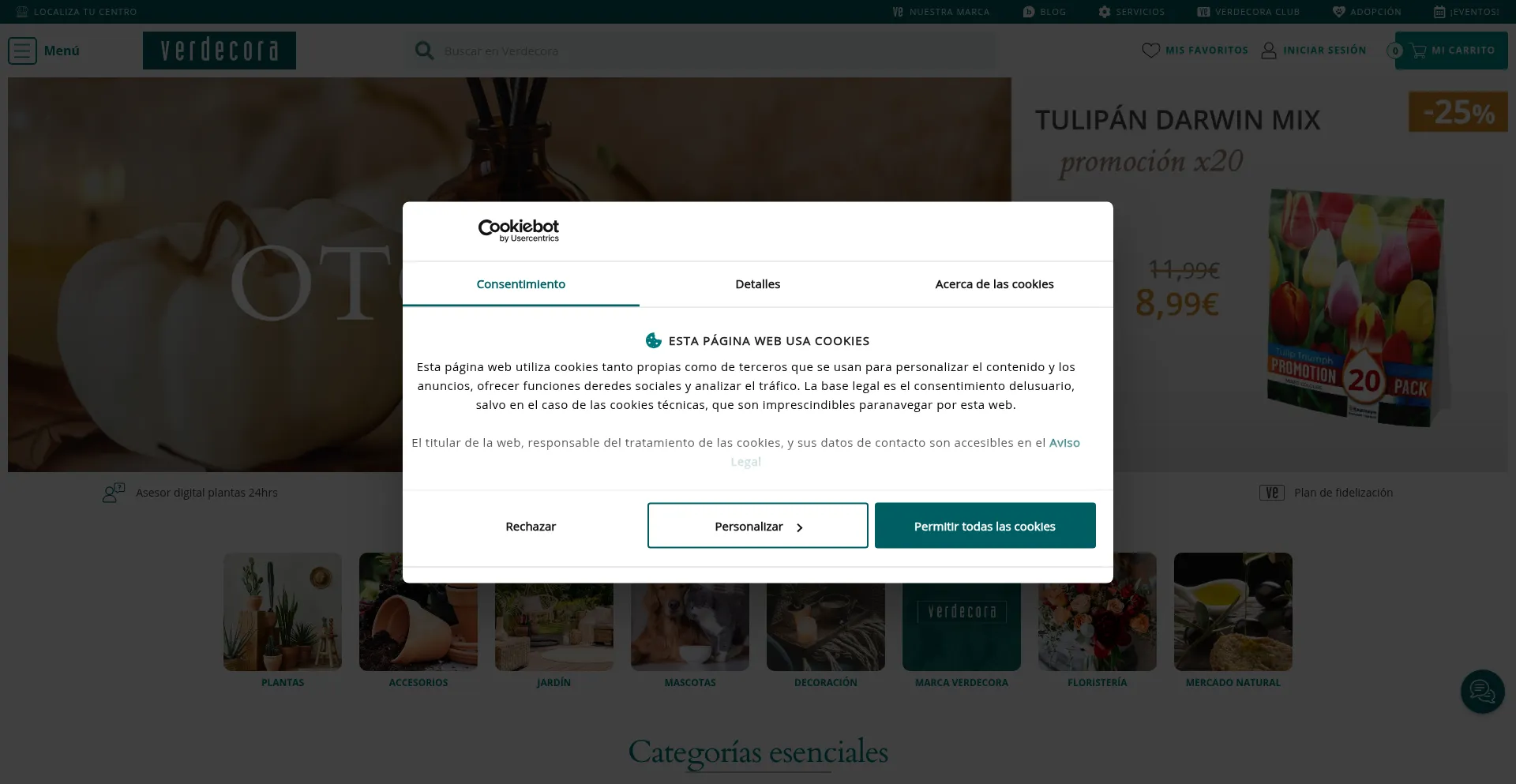 该网站实现符合GDPR或CCPA等隐私法规的cookie同意机制。这表明 verdecora.es 遵守数据保护标准并为用户提供对个人数据收集实践的控制。