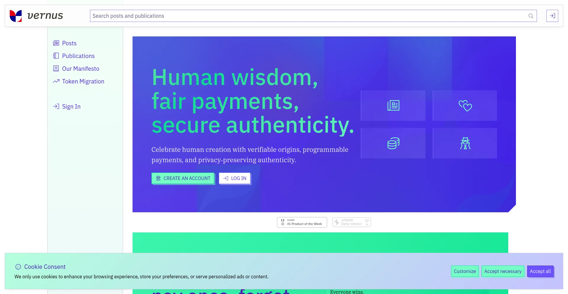 Vernus is a platform where everyone can buy and sell content by the piece. Say goodbye to subscription fatigue and hello to content à la carte.
