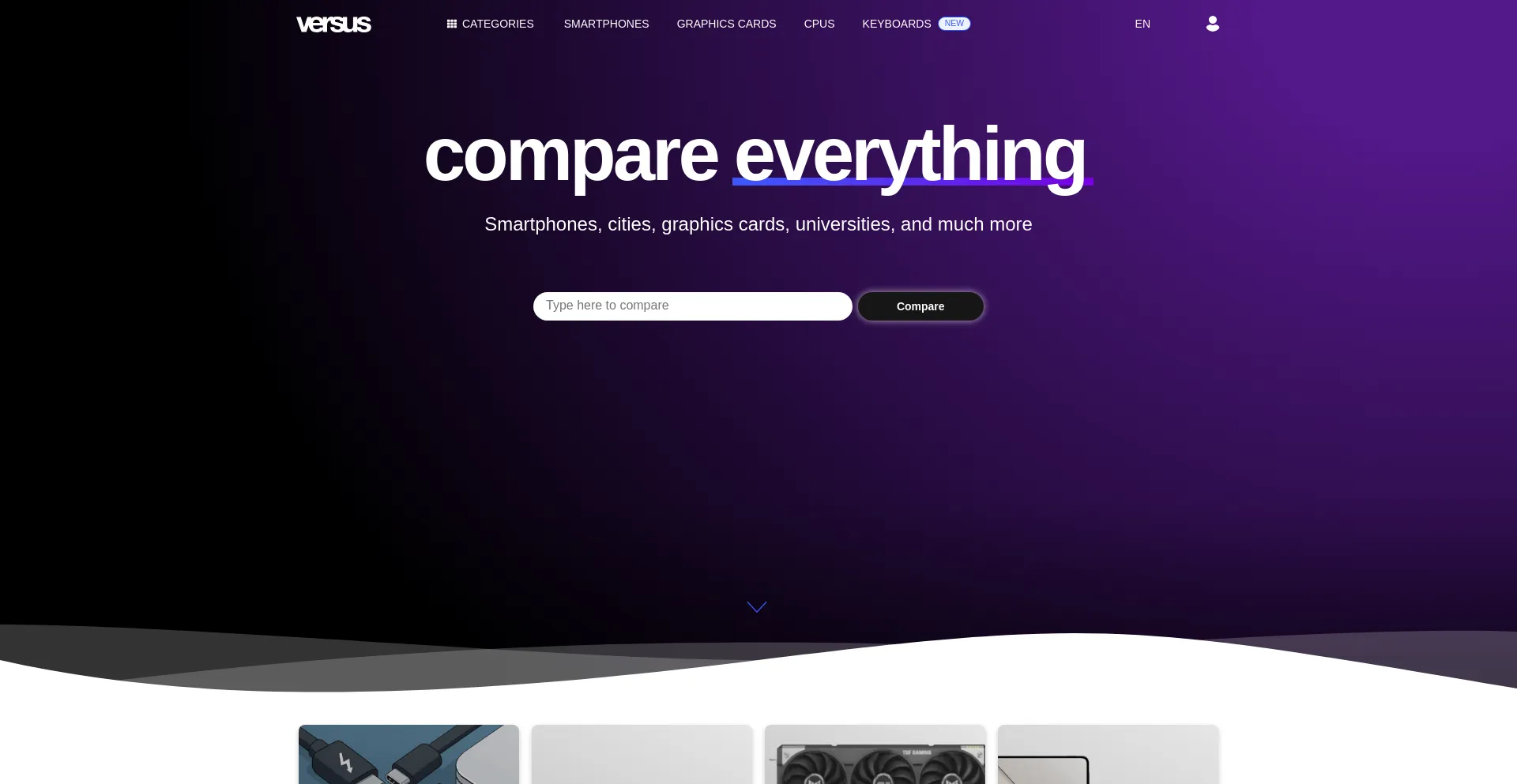 Versus is a global data-driven comparison platform, covering over 90 categories. Compare smartphones, cameras, headphones, graphics cards, and much more. With detailed tech spec...