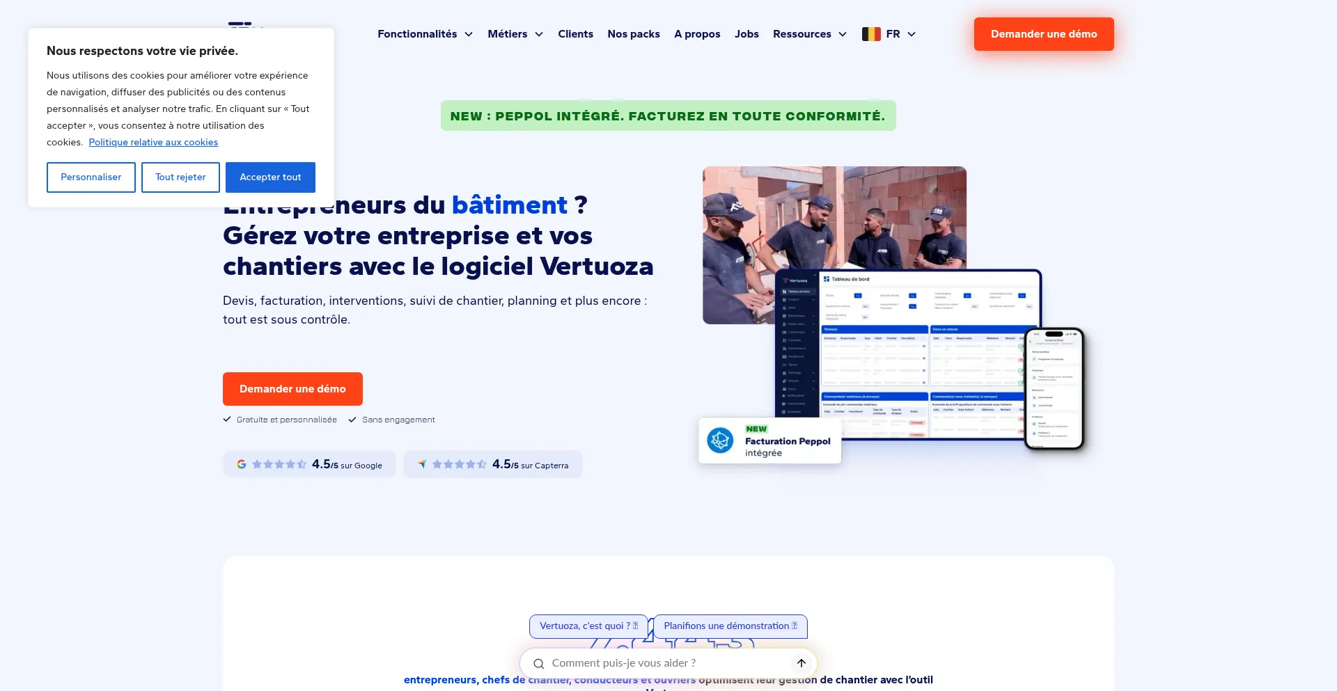 Le logiciel pour le bâtiment Vertuoza vous permet de vous concentrer sur l'essentiel de votre métier d'entrepreneur ! Du devis à la livraison du chantier en passant par le su...