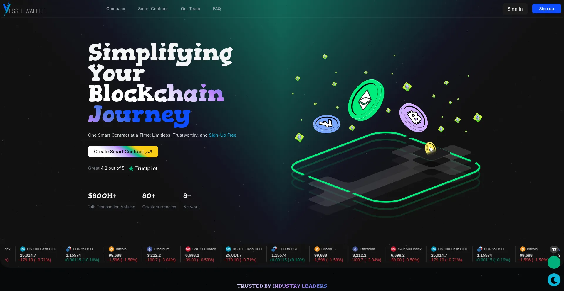 Vesselwallet offers blockchain smart-contract with lowest fees operating since since 2017.