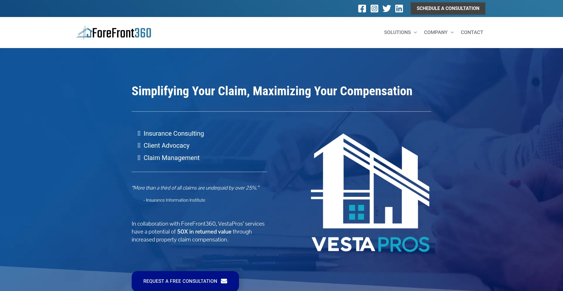 VestaPros delivers expert property claim consulting and damage documentation to ensure accurate settlements, minimize disputes, and recovery time after a loss.