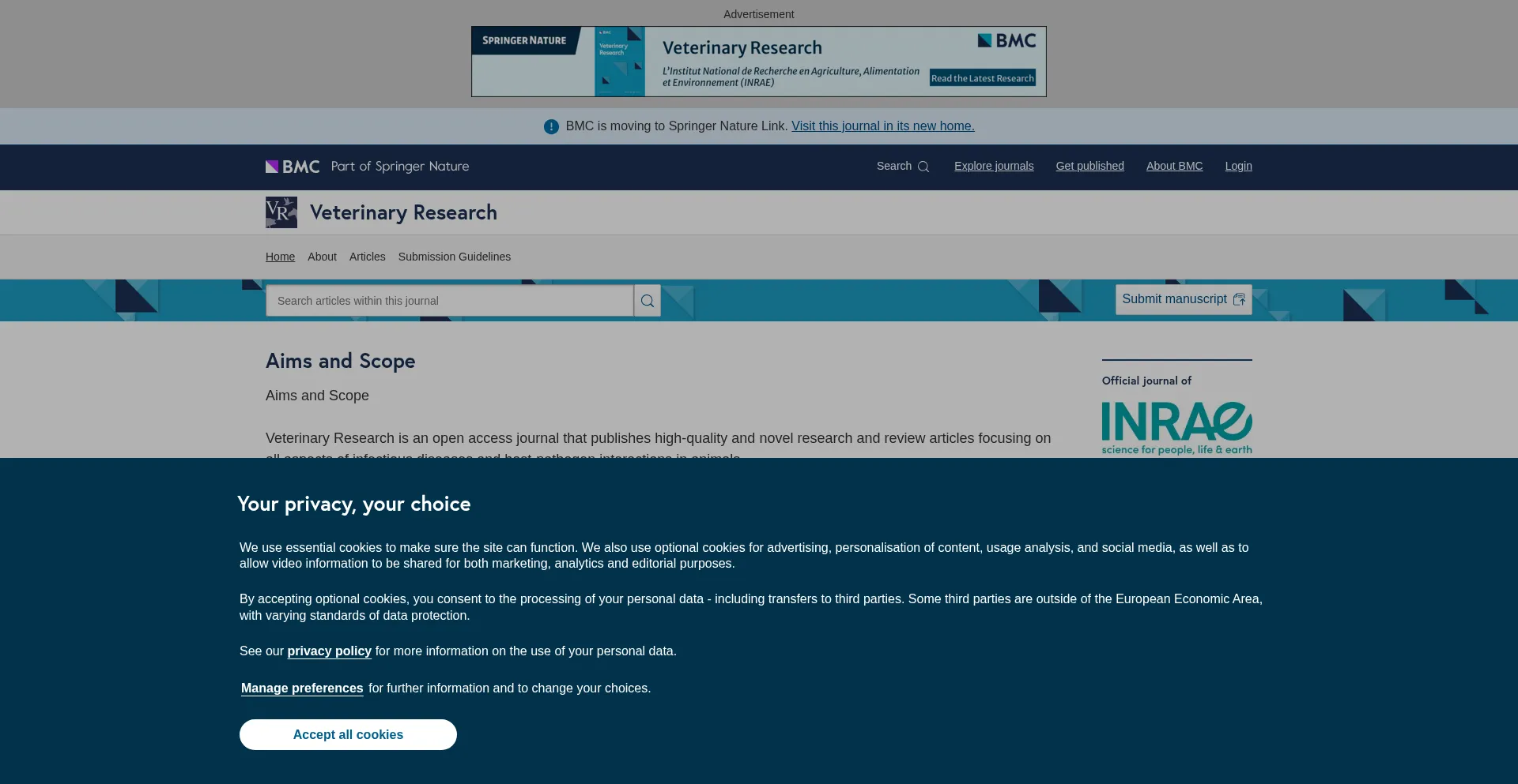 该网站实现数据收集表单,请求个人信息,包括姓名、电子邮件地址、电话号码或其他敏感详细信息。用户应验证 veterinaryresearch.biomedcentral.com 的合法性并在提交个人数据前查看隐私政策。