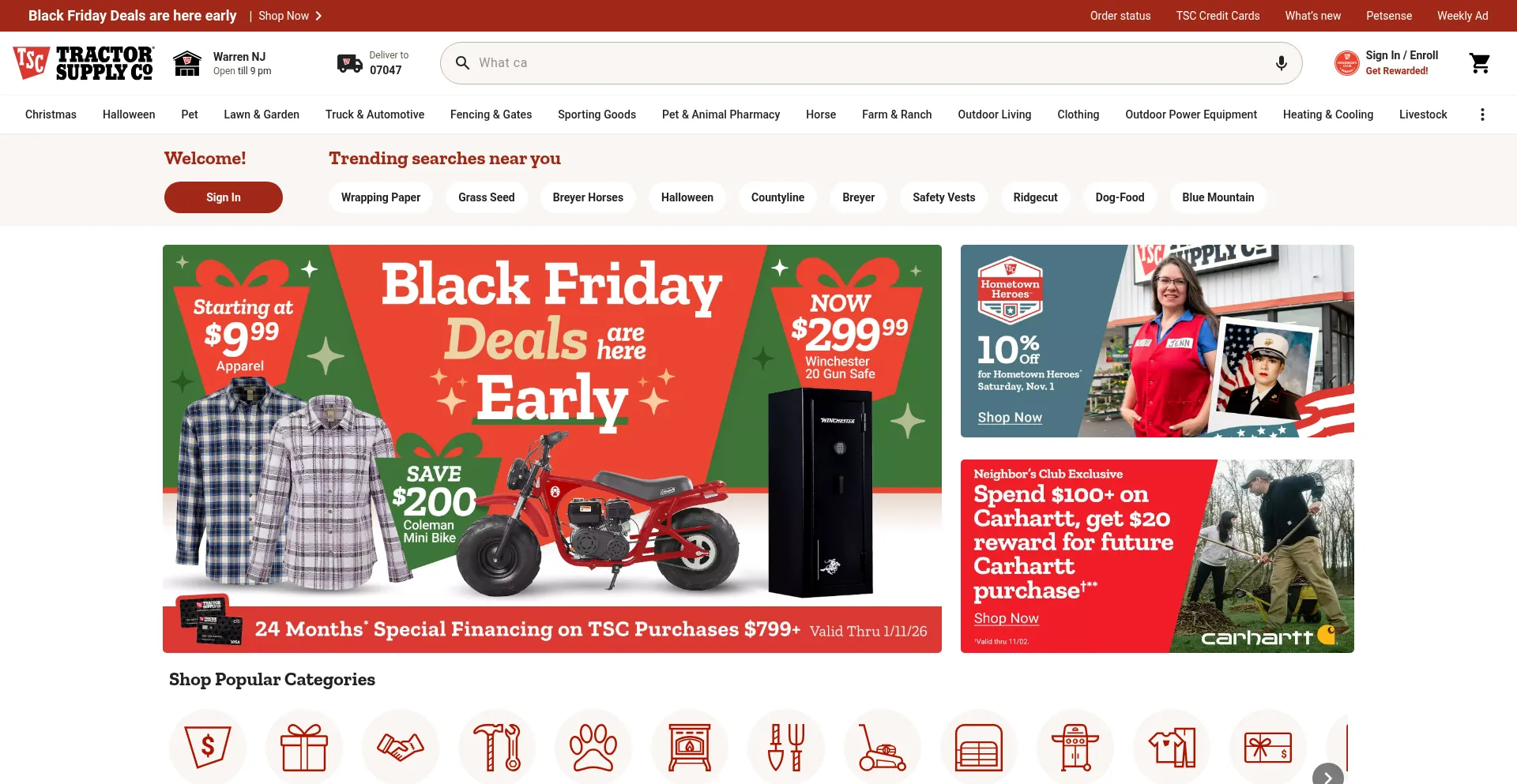 Tractor Supply Co. is the source for farm supplies, pet and animal feed and supplies, clothing, tools, fencing, and so much more. Buy online and pick up in store is available at...
