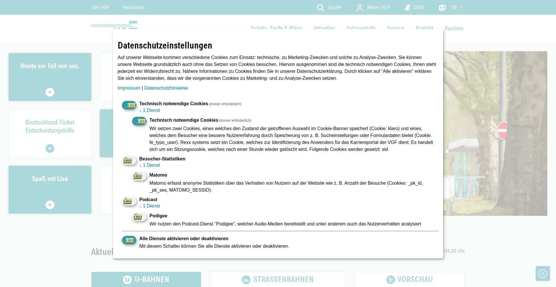 Alle fahren mit! Die Verkehrsgesellschaft Frankfurt am Main, kurz VGF, ist das Frankfurter Verkehrsunternehmen und der Verkehrsdienstleister der Stadt. Auf neun U-Bahn- und ze...