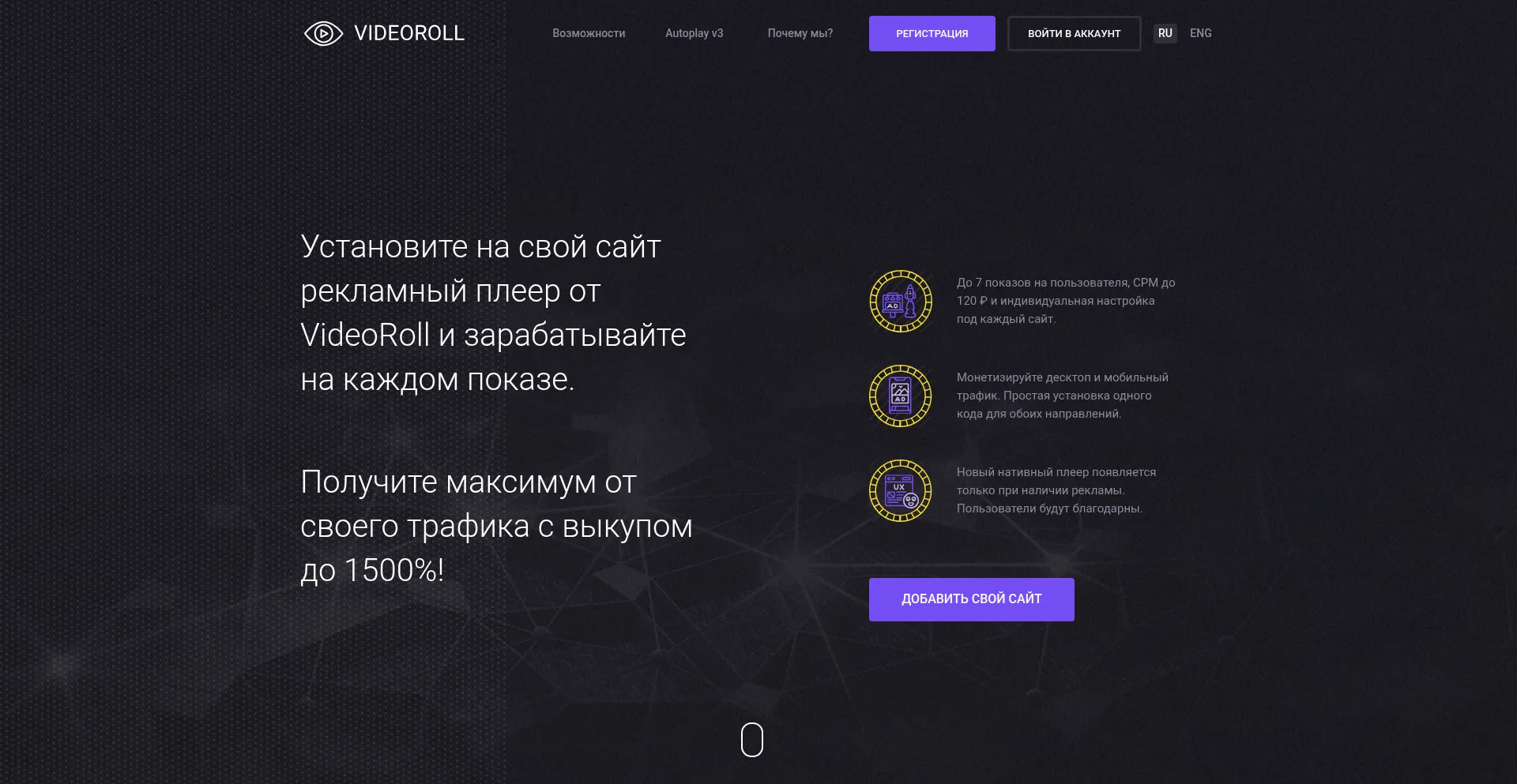 VideoRoll.net - Партнёрская программа по видеорекламе Autoplay 3.0 (VPAUT)