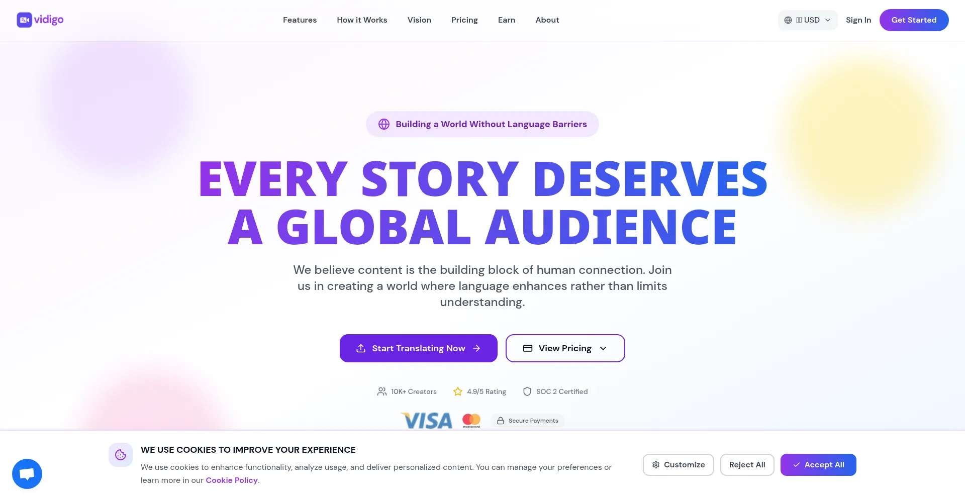 该网站实现符合GDPR或CCPA等隐私法规的cookie同意机制。这表明 vidigo.online 遵守数据保护标准并为用户提供对个人数据收集实践的控制。