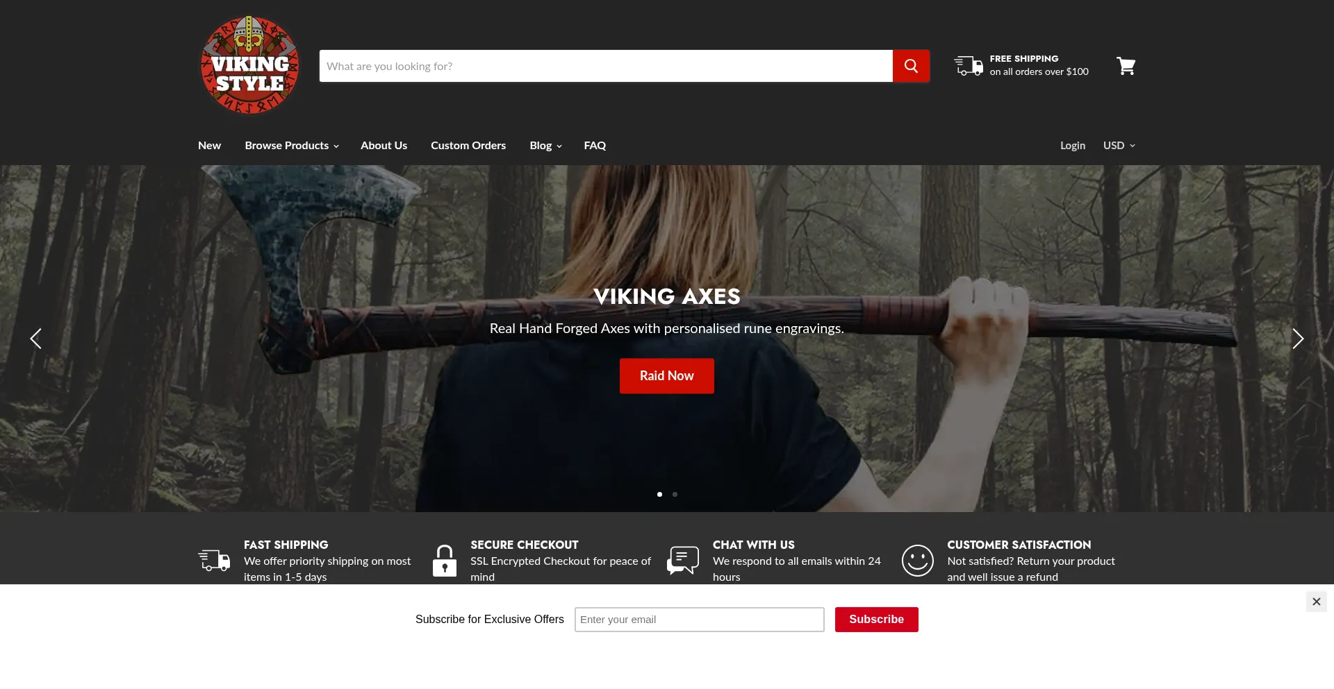 Handmade Viking Axes, Swords, Jewelry, Clothing and More. Raid our store Now!