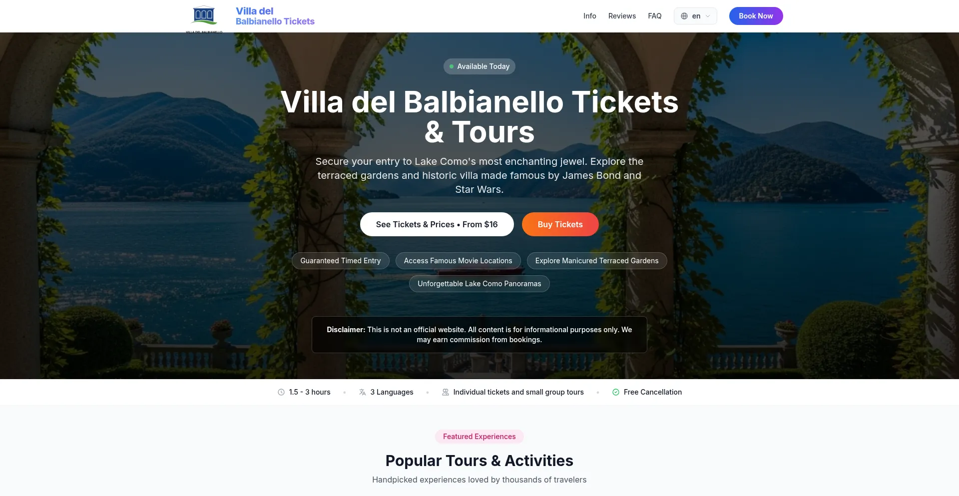 Find the best prices for Villa del Balbianello tickets and tours. Book online through our trusted partners to guarantee your entry, get instant confirmation, and explore the stu...