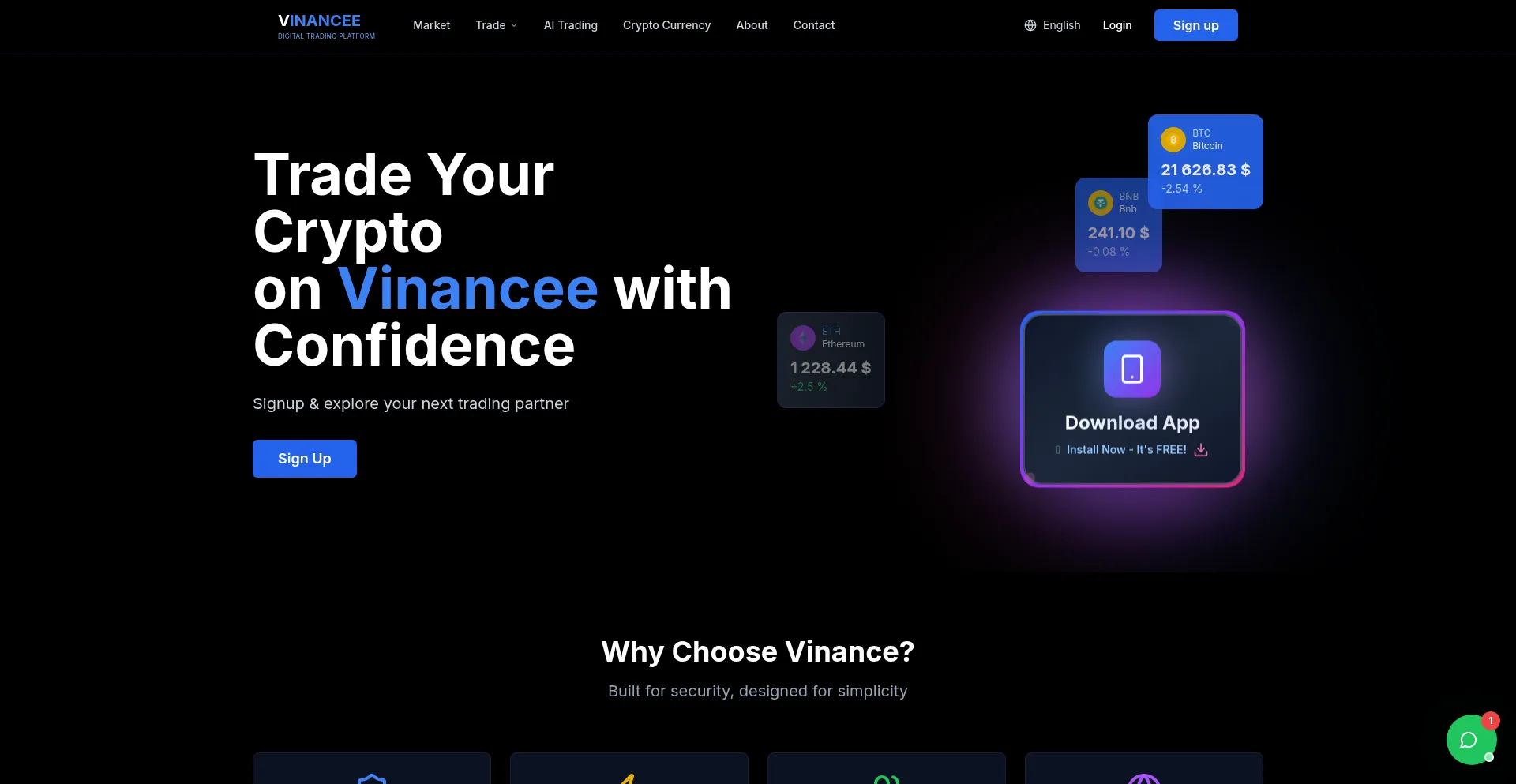 Signup & explore your next trading partner on Vinance - your trusted digital trading platform for Bitcoin, Ethereum, BNB, and more.