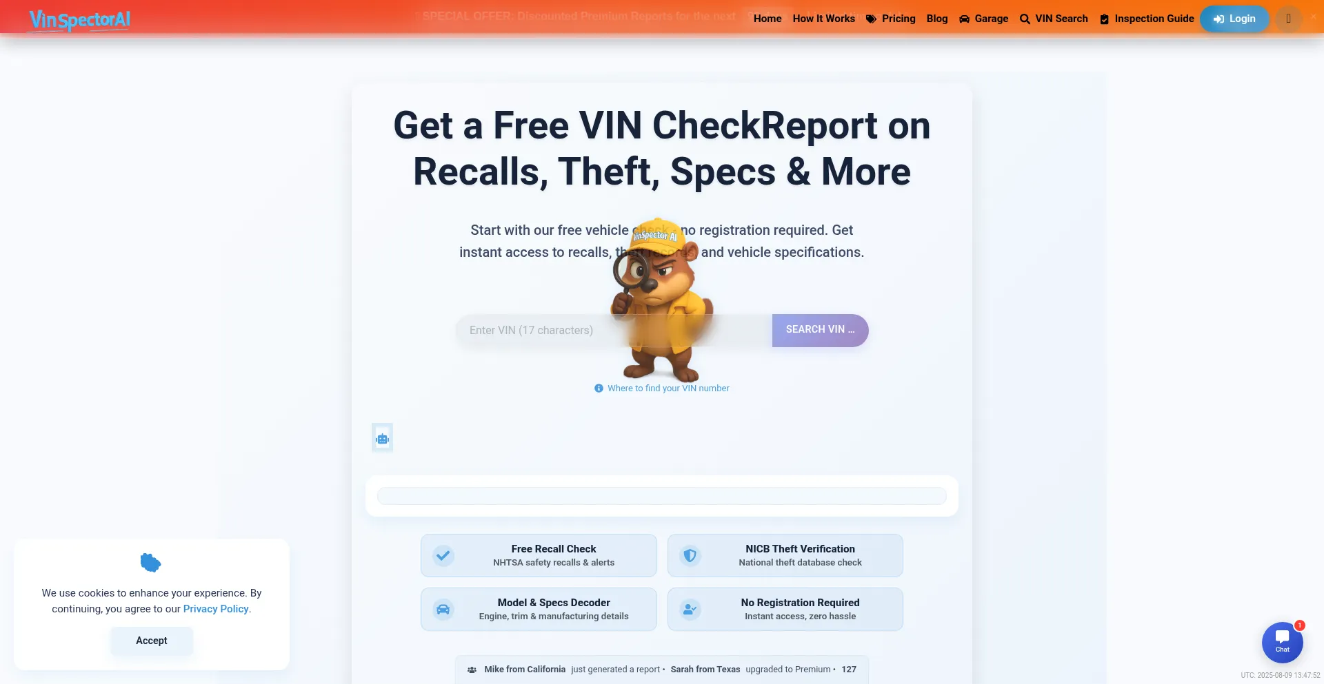 Free VIN Check & AI-Powered Vehicle History Reports | VinSpectorAI
