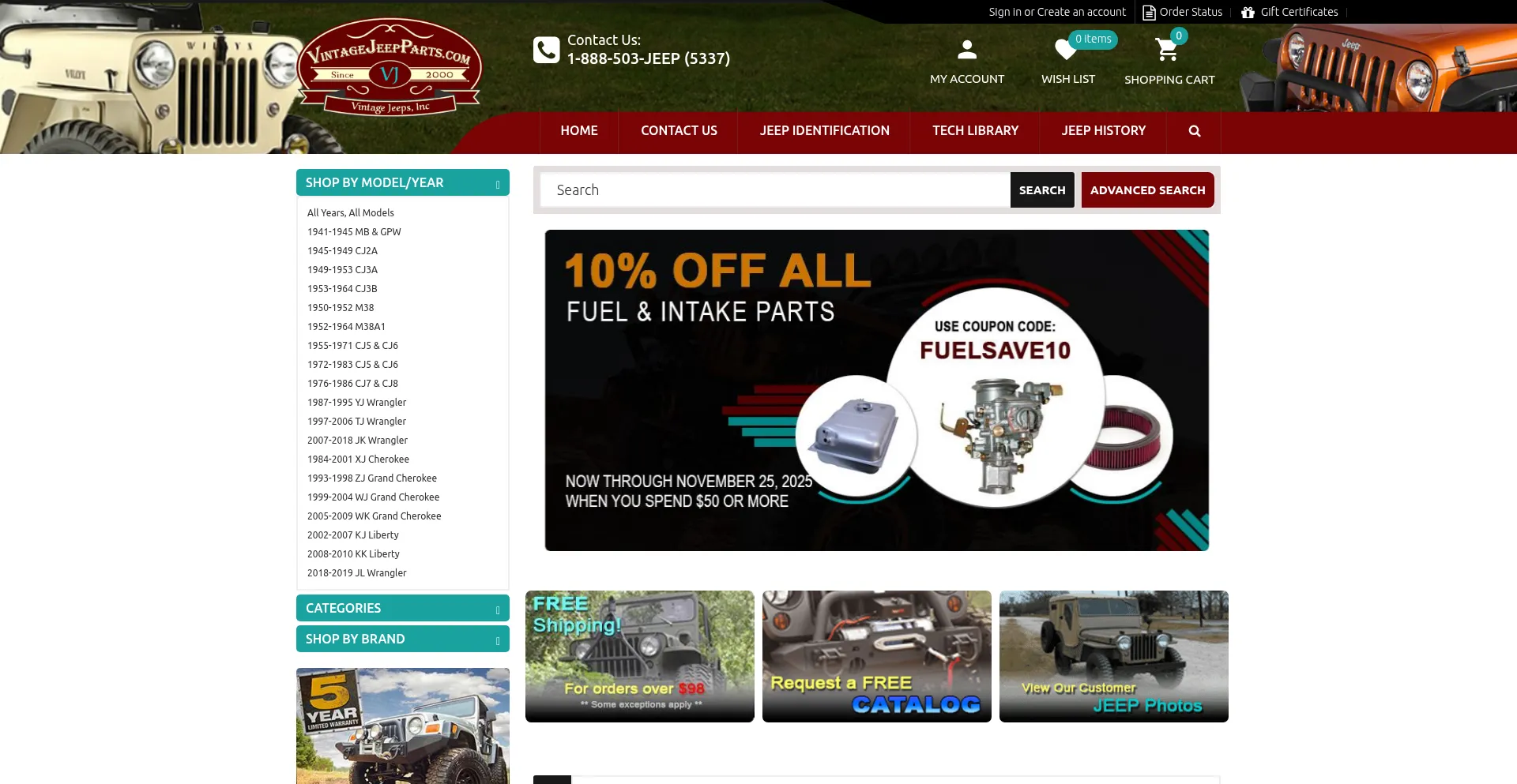 vintagejeepparts.com 使用 Bootstrap,这是一个广泛采用的开源响应式网页开发框架。Bootstrap 通过标准化组件和样式实现移动友好界面的高效创建。
