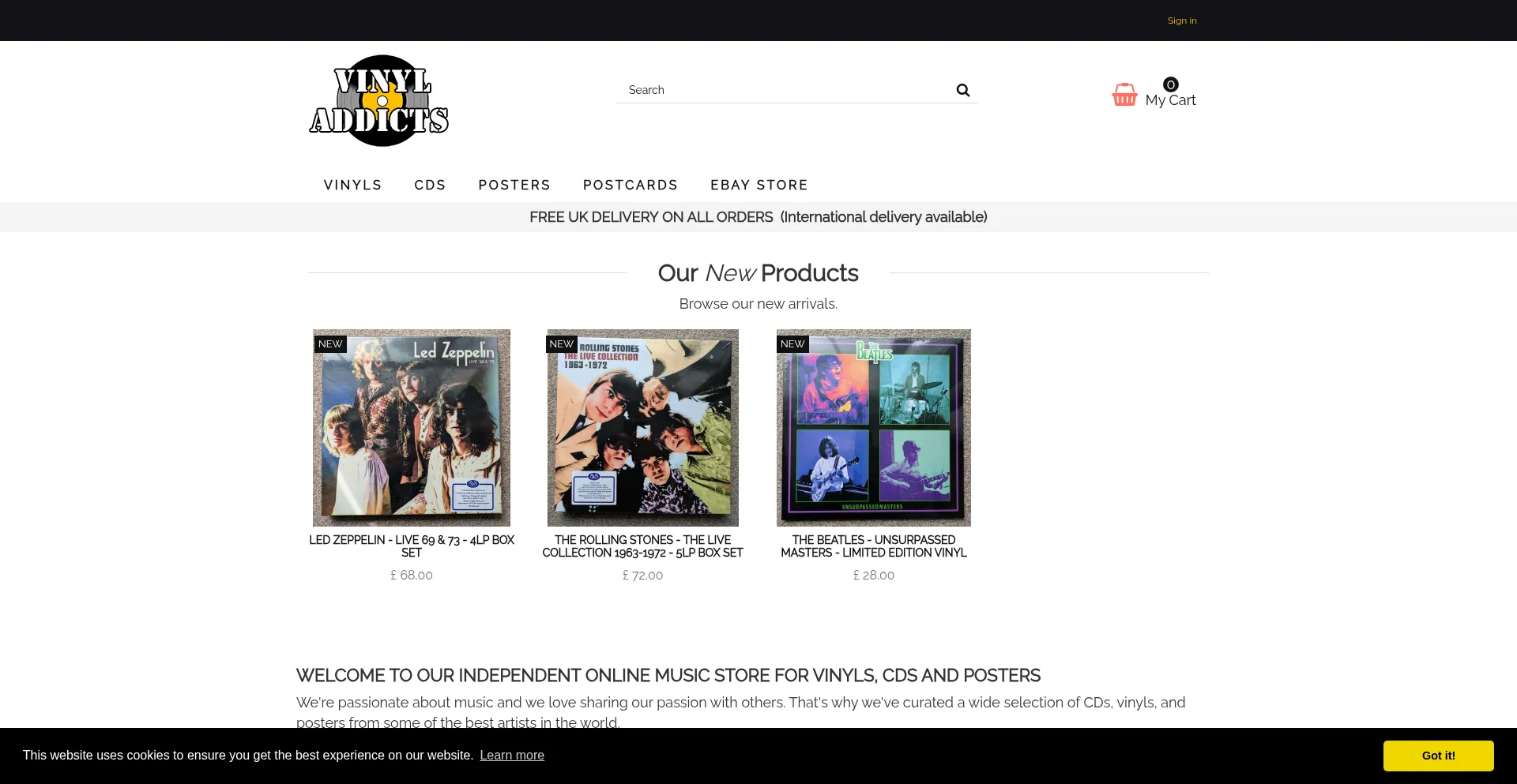 A family run business selling Records, CDs, Posters and music memorabilia for over 40 years - Now available online with Free Fast UK delivery