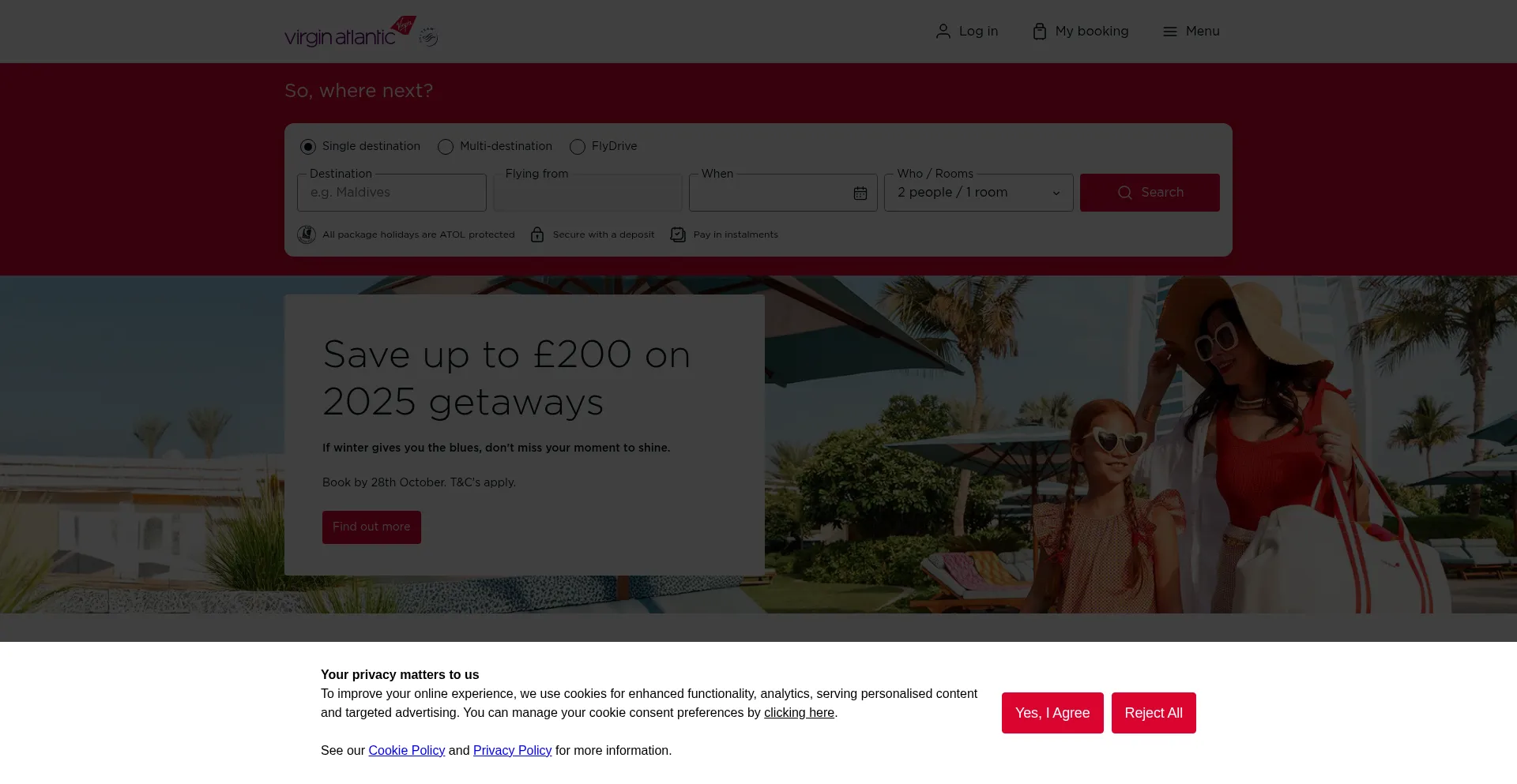 该网站实现符合GDPR或CCPA等隐私法规的cookie同意机制。这表明 virginholidays.co.uk 遵守数据保护标准并为用户提供对个人数据收集实践的控制。