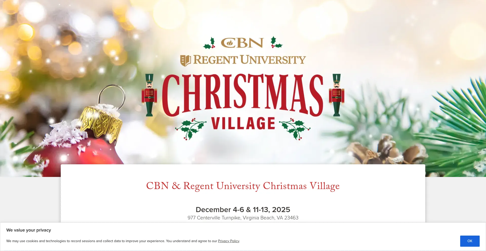 Experience the Christmas season at the CBN | Regent University Christmas Village! Join us this for a festive Virginia Beach Christmas event.