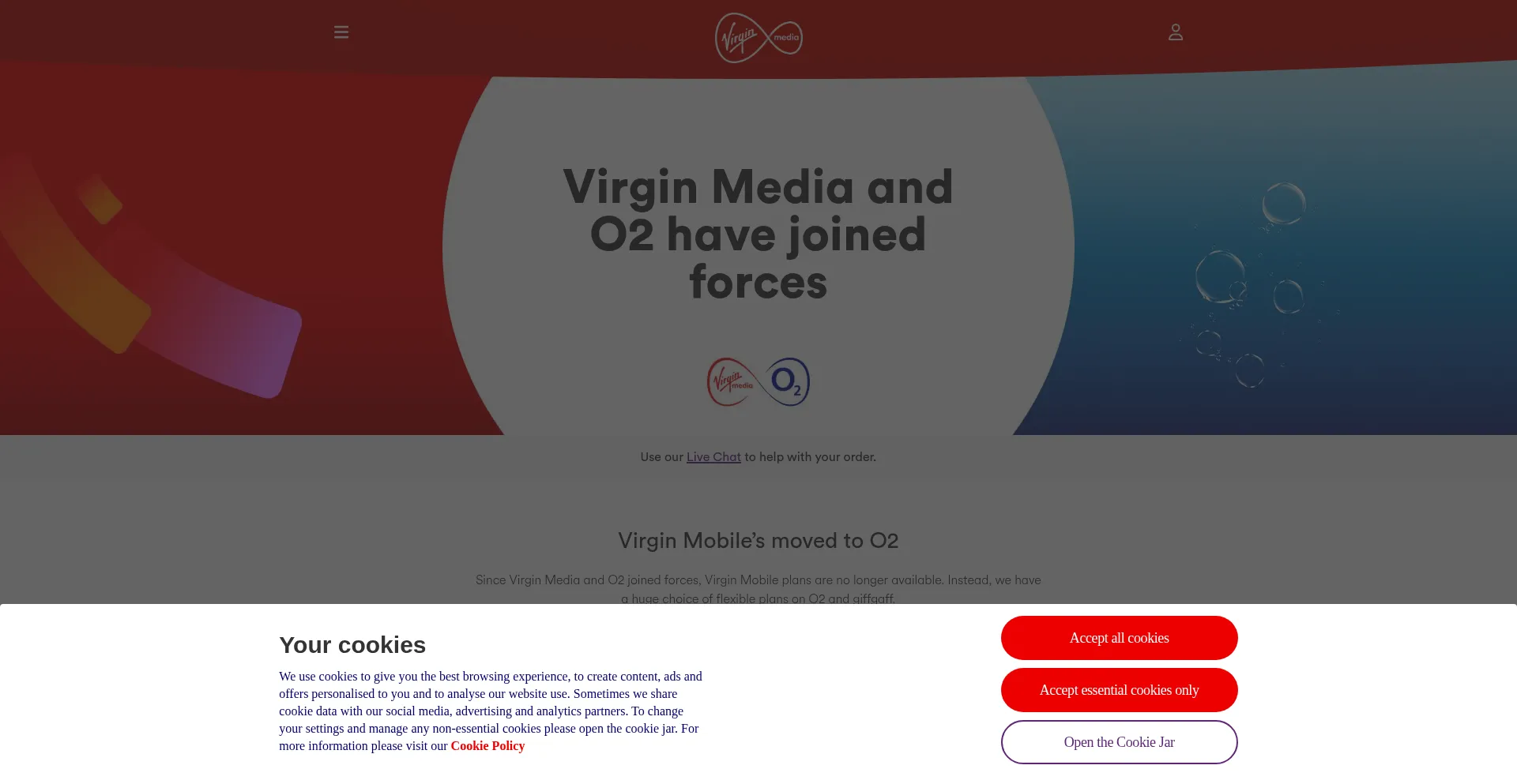 该网站实现符合GDPR或CCPA等隐私法规的cookie同意机制。这表明 virginmobile.co.uk 遵守数据保护标准并为用户提供对个人数据收集实践的控制。