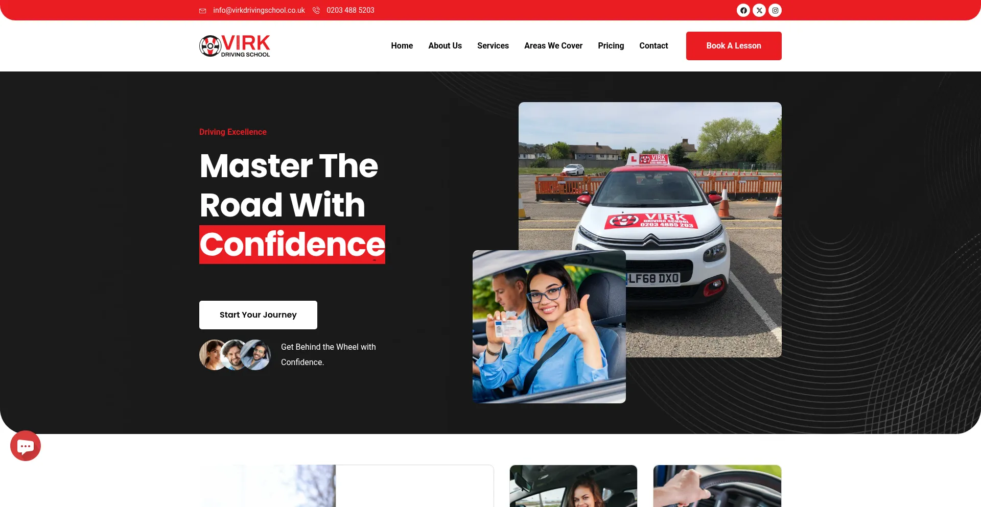 网站上存在社交媒体链接表明 virkdrivingschool.co.uk 在社交媒体上维护官方账户,这是可信度和参与度的积极信号。