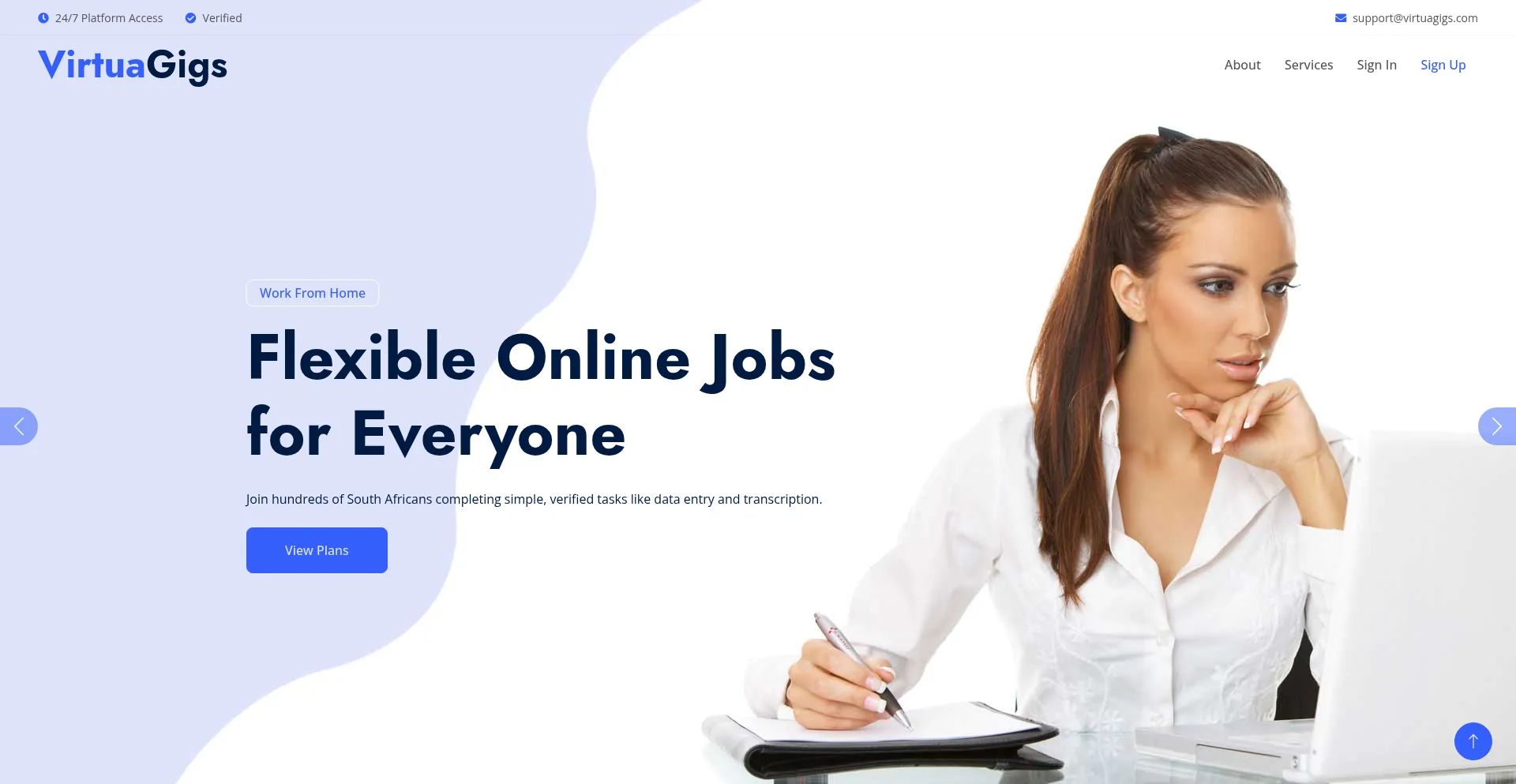 该网站实现数据收集表单,请求个人信息,包括姓名、电子邮件地址、电话号码或其他敏感详细信息。用户应验证 virtuagigs.com 的合法性并在提交个人数据前查看隐私政策。