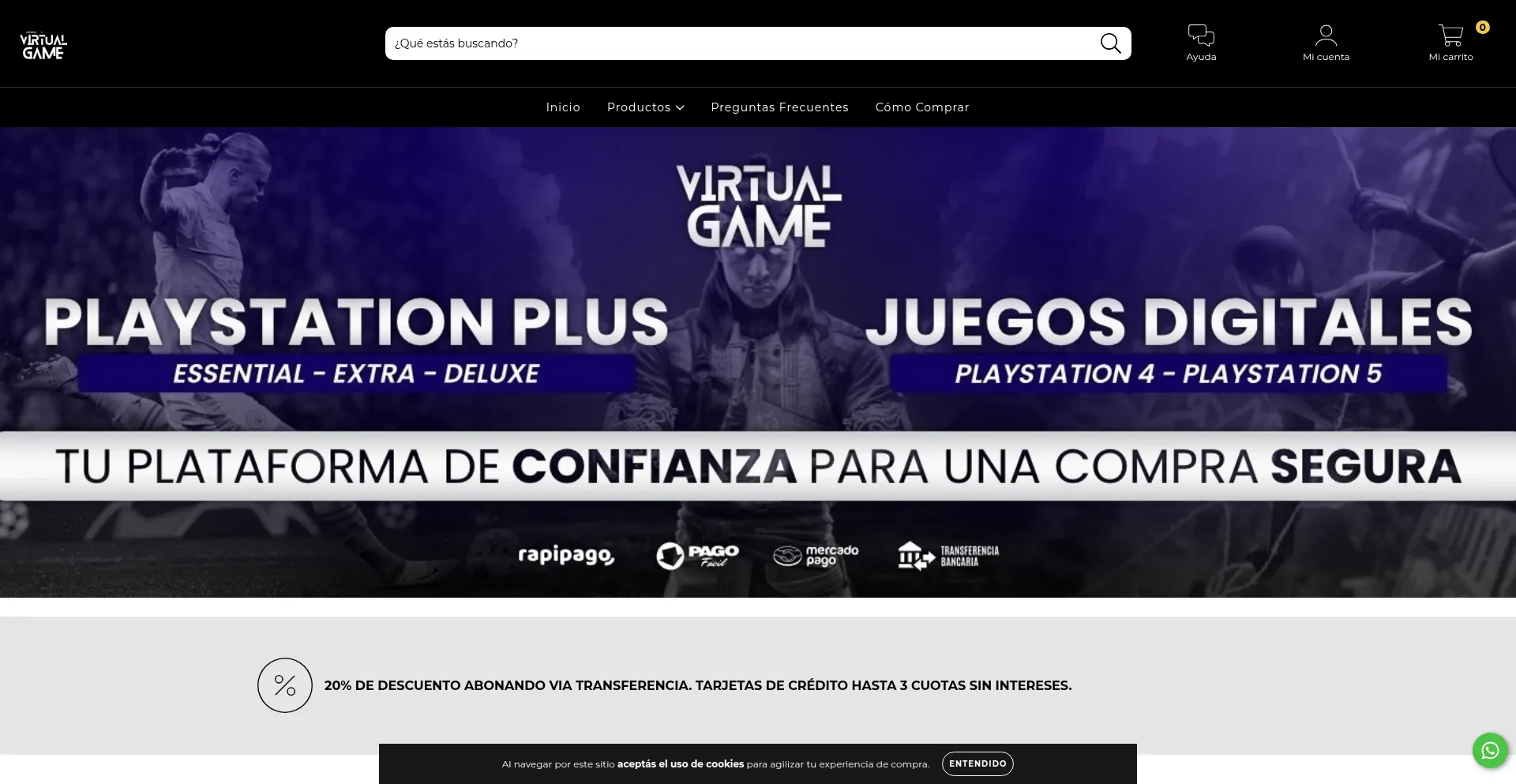Comprá productos de Virtual Game por internet. Tenemos 2 x 1 , black friday y más. Hacé tu pedido y pagalo online.