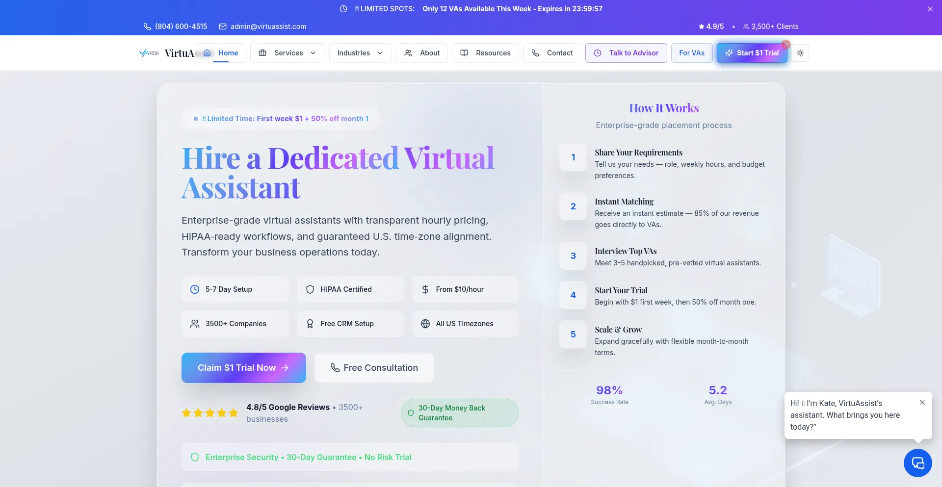 VirtuAssist - Premium Virtual Assistant Services | HIPAA Compliant | $1 Trial