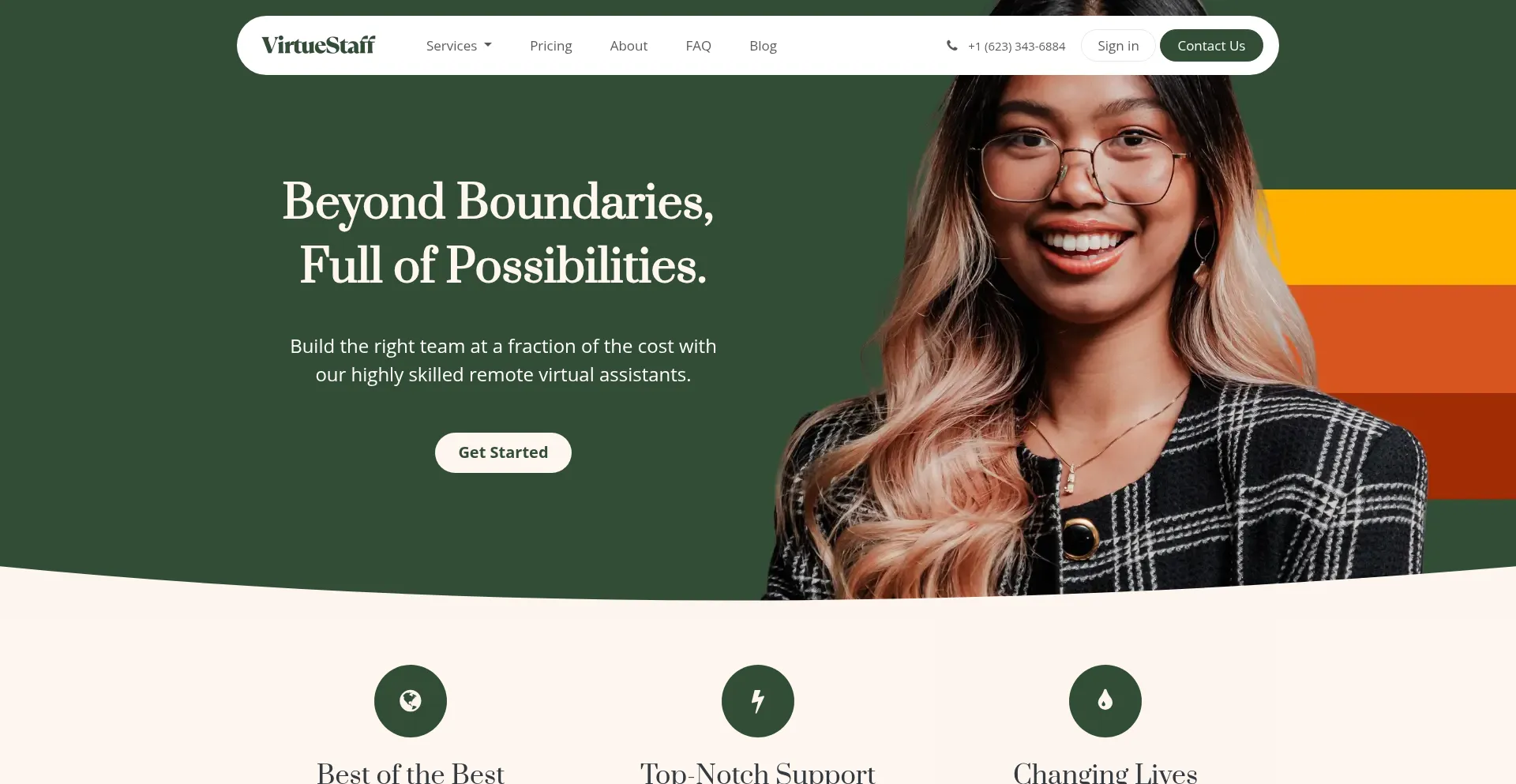 网站上存在社交媒体链接表明 virtuestaff.com 在社交媒体上维护官方账户,这是可信度和参与度的积极信号。