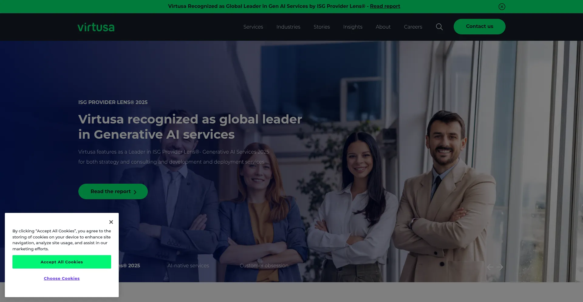 该网站实现符合GDPR或CCPA等隐私法规的cookie同意机制。这表明 virtusa.com 遵守数据保护标准并为用户提供对个人数据收集实践的控制。