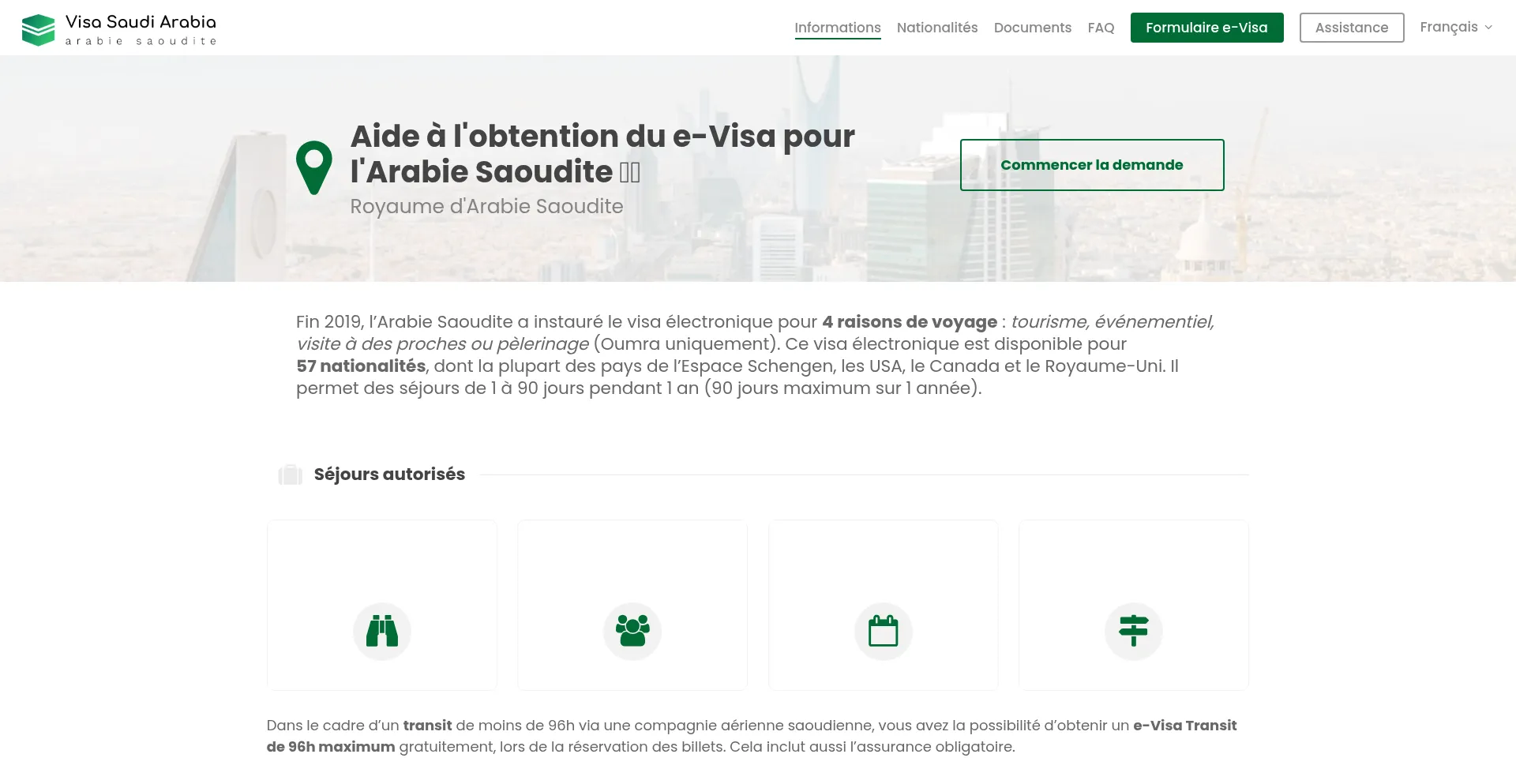 e-Visa Arabie Saoudite valide pour Tourisme / Omra / Événementiel / Visite à des connaissances. Demande simple ou groupée. Paiement sécurisé.