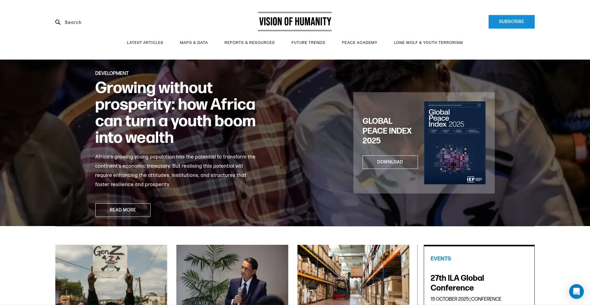 Vision of Humanity is a destination for peace providing analysis, data, and editorial through a lens of peace, security and development.
