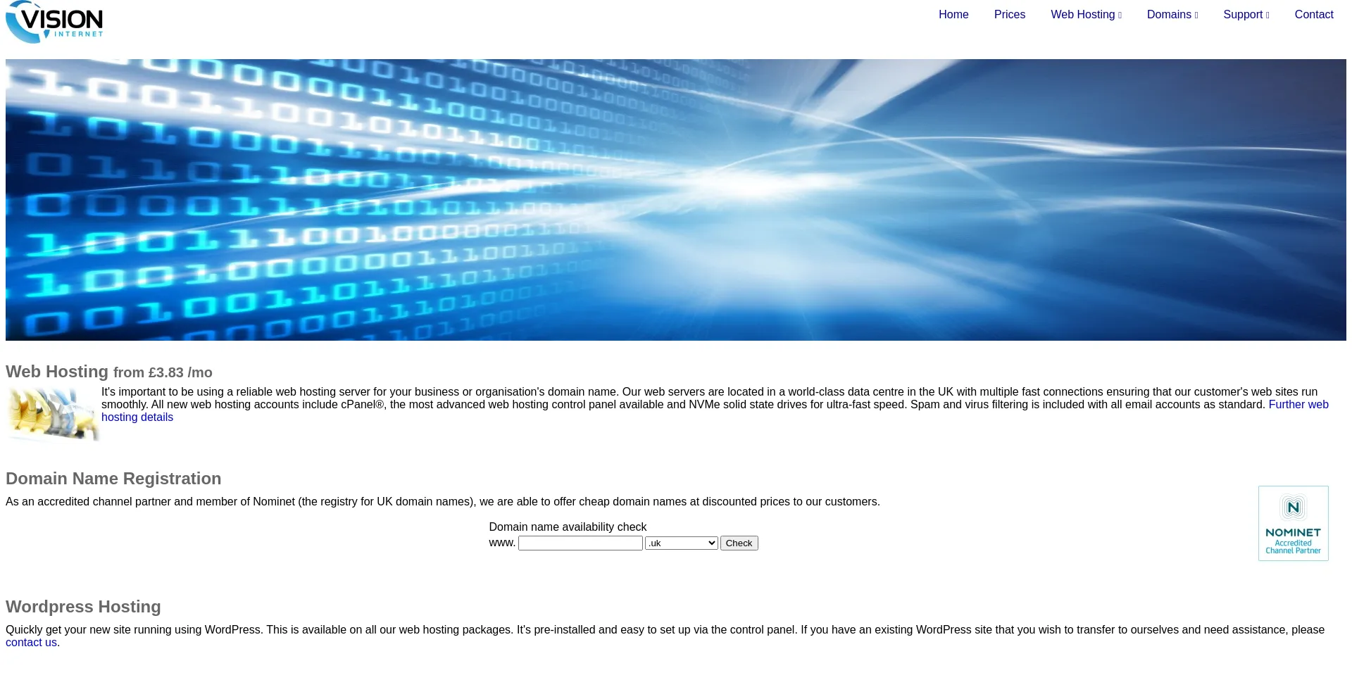 Web Hosting Server and UK Domain Names from Vision Internet.