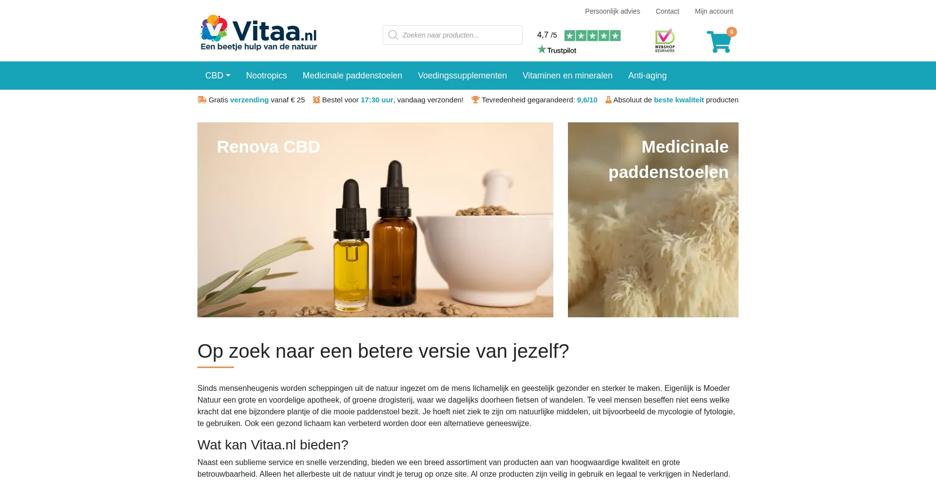 Vitaa.nl is dé webshop voor voedingssupplementen, nootropics, medicinale paddenstoelen & anti aging producten. Super snelle verzending!