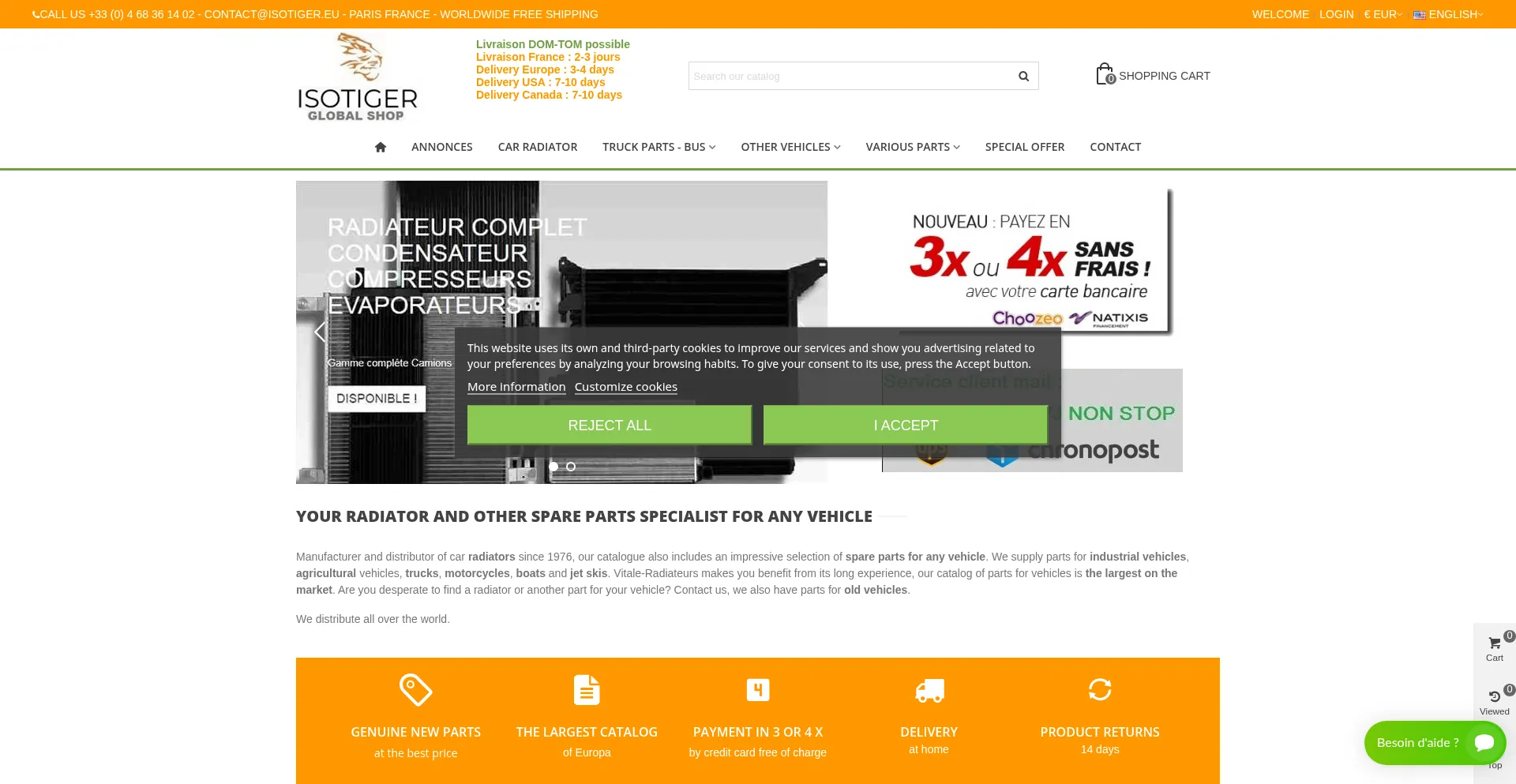 ISOTIGER Global shop complete range of spare parts for engine thermal systems, lubrication, tanks, turbos and air conditioning systems.