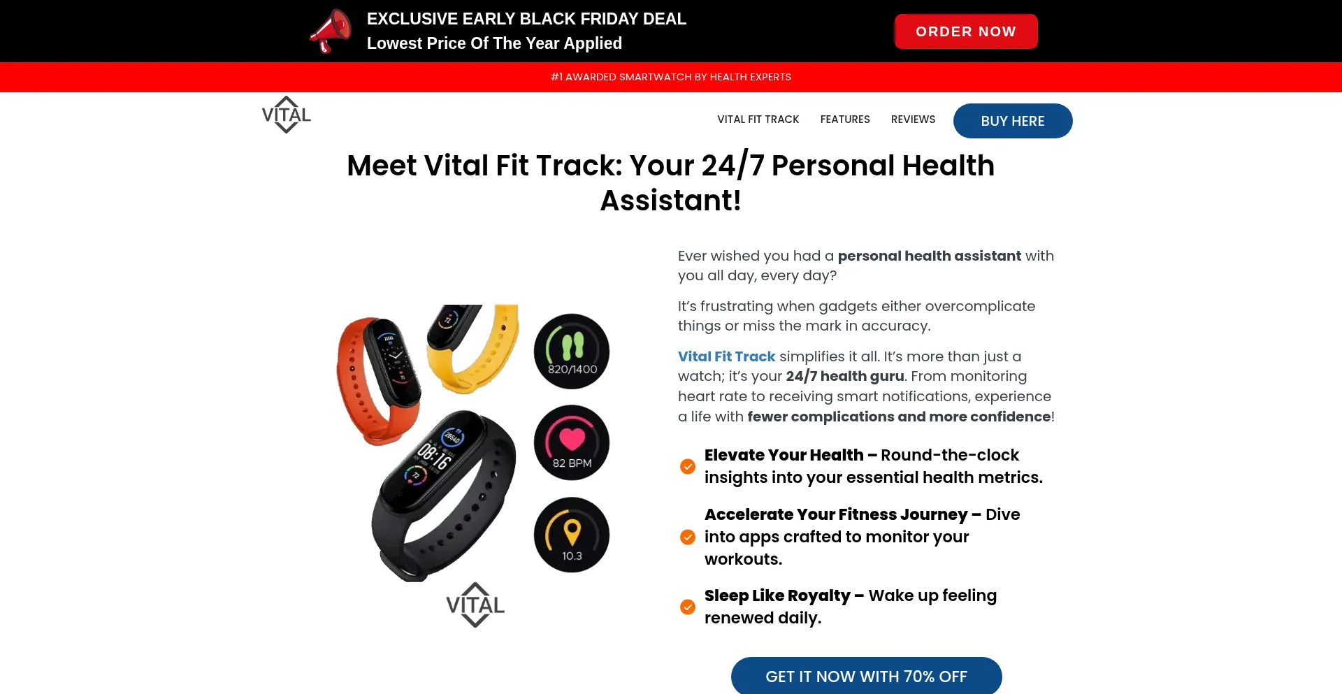Experience health tracking like never before with Vital Fit Track. Be confident and stylishly monitor your vitals 24/7.