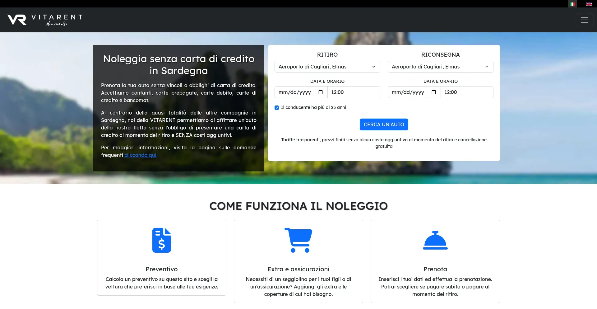 Noleggio senza carta di credito in Sardegna. Noleggia auto, furgoni e veicoli di lusso a breve o lungo termine. Tariffe low cost in tutta l'isola.