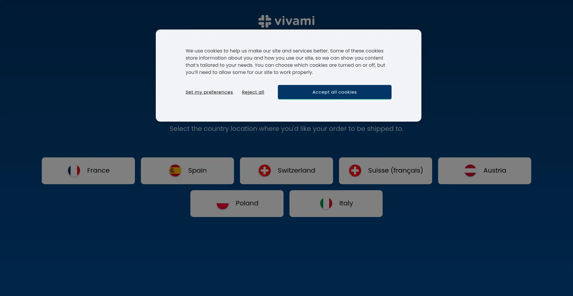 Vivami For France · Spain · Switzerland · Austria · Poland · Italy · Select a shipping country to access our online consultation & medication delivery service.