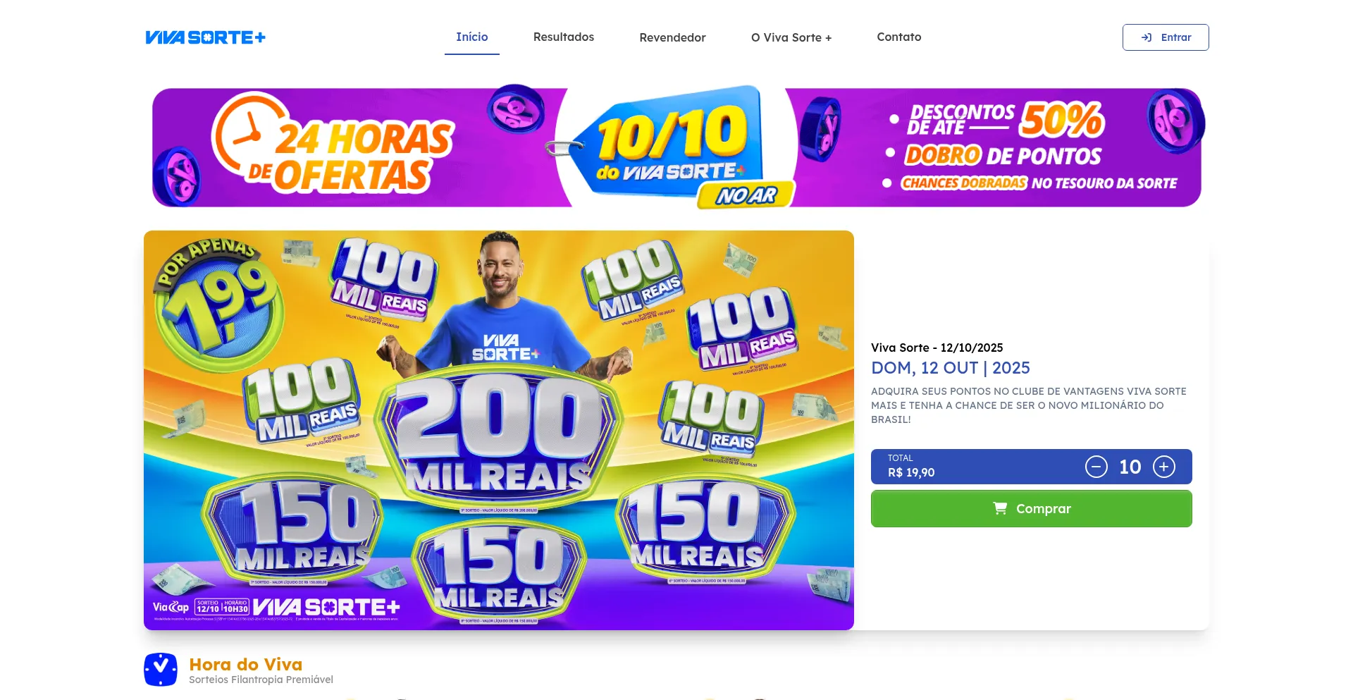 网站上存在社交媒体链接表明 vivasorteoficial.com.br 在社交媒体上维护官方账户,这是可信度和参与度的积极信号。