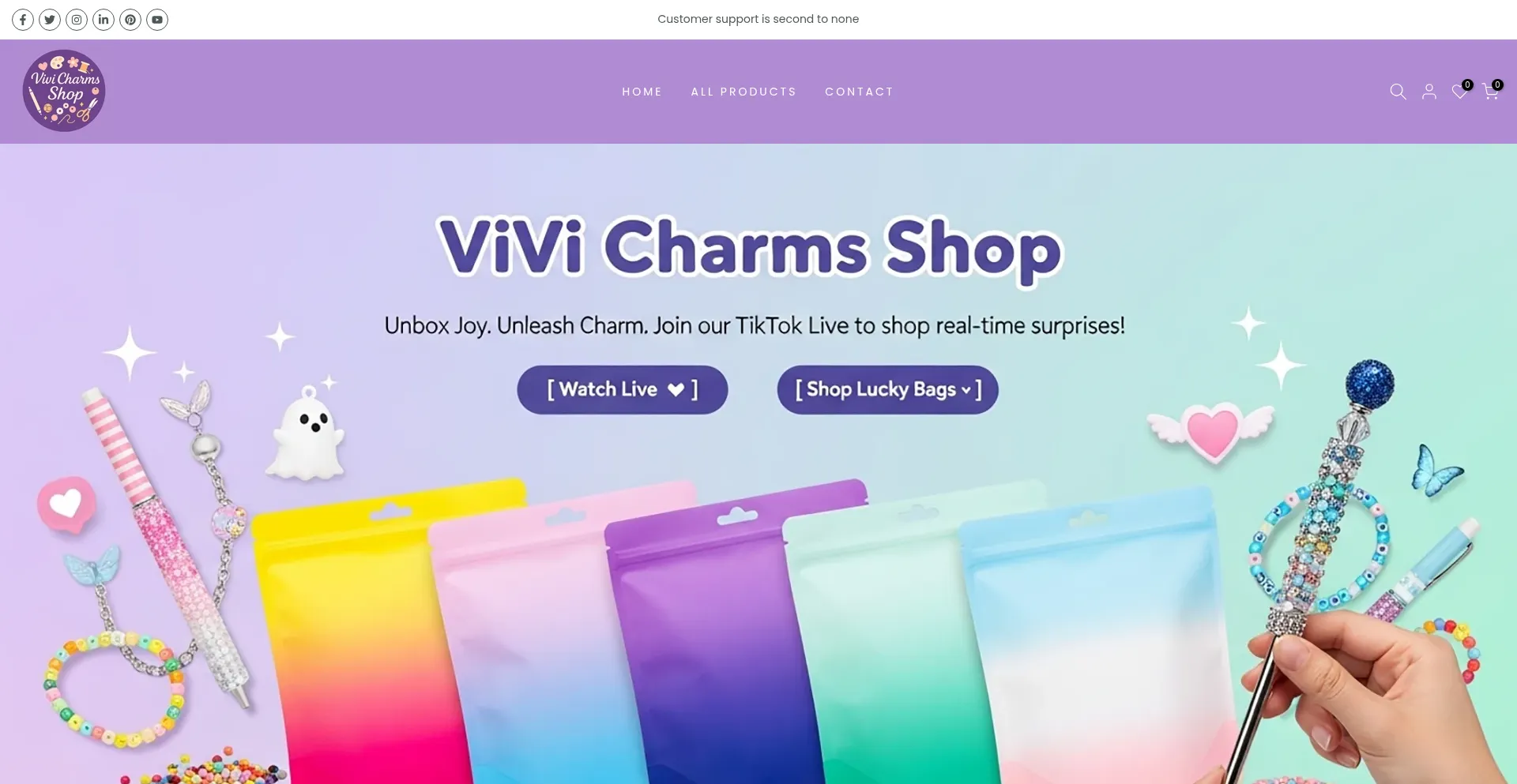 网站 vivicharms.shop 使用免费电子商务平台解决方案,这可能表明成本意识运营,但也可能暗示与企业级解决方案相比在安全功能、客户支持或高级功能方面的限制。